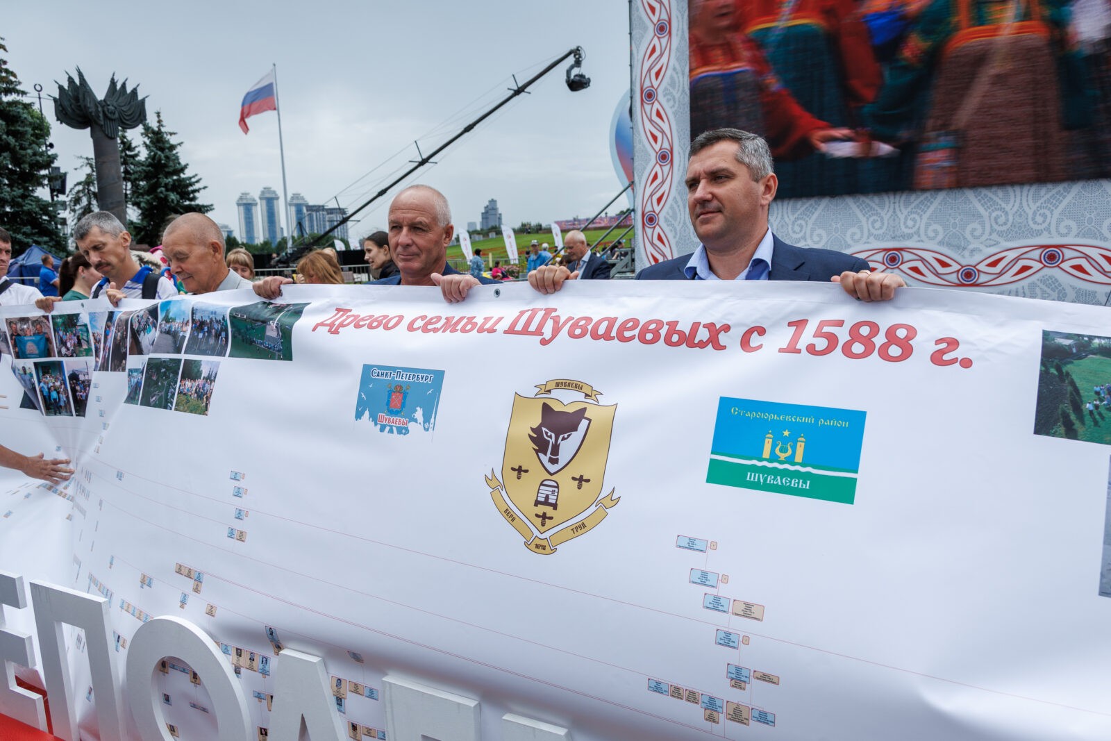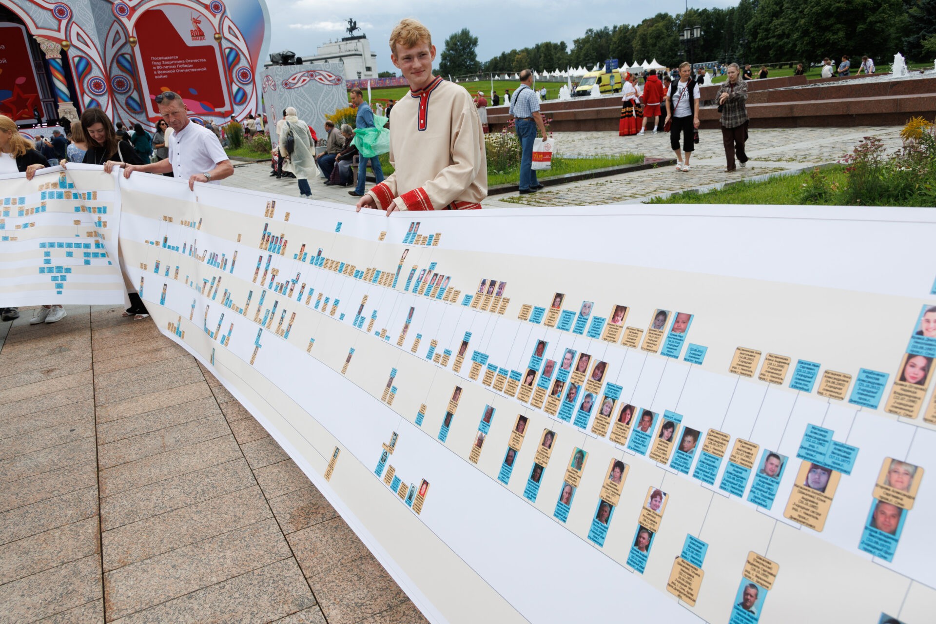 «В селе Новоюрьево Тамбовской области было 6 тысяч человек, из них практически все мужчины ушли на войну. Около 800 человек погибло, из них 34 человека - с фамилией Шуваевы. При этом погибшие из этой деревни с другими фамилиями имеют к нам прямое отношение по материнским линиям. Это Копыловы, Братищевы, Поздняковы. И вот сегодня, в год 80-летия Победы, мы решили собраться на Поклонной горе. Люди приехали из разных городов Сибири, Дальнего Востока, Мурманска, Санкт-Петербурга, Вологды, многие проживают в Москве, и мы решили сделать такое родственное движение, чтобы почтить память наших дедов и отдать им дань уважения», - рассказал организатор большого семейного сбора Иван Шуваев.