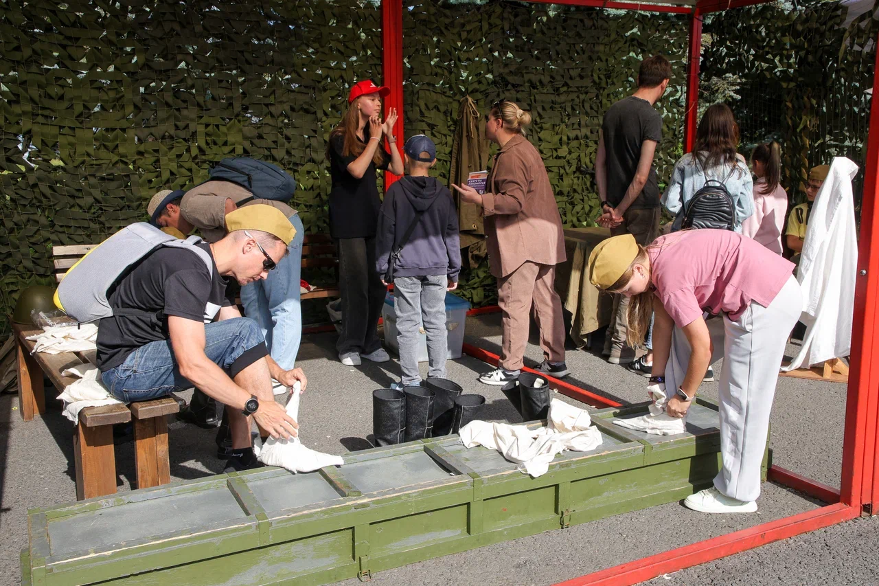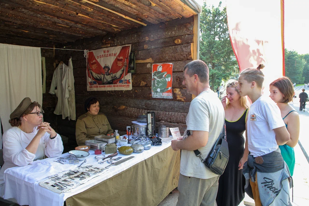 Всего же у Музея Победы работали 80 тематических площадок, погружающих в атмосферу времен Великой Отечественной. Гостей встречали реконструкторы в военной форме. На интерактивных площадках дети и взрослые проходили «Курс молодого бойца», учились метать гранаты и собирать макеты оружия, обучались тактической медицине и многому другому.