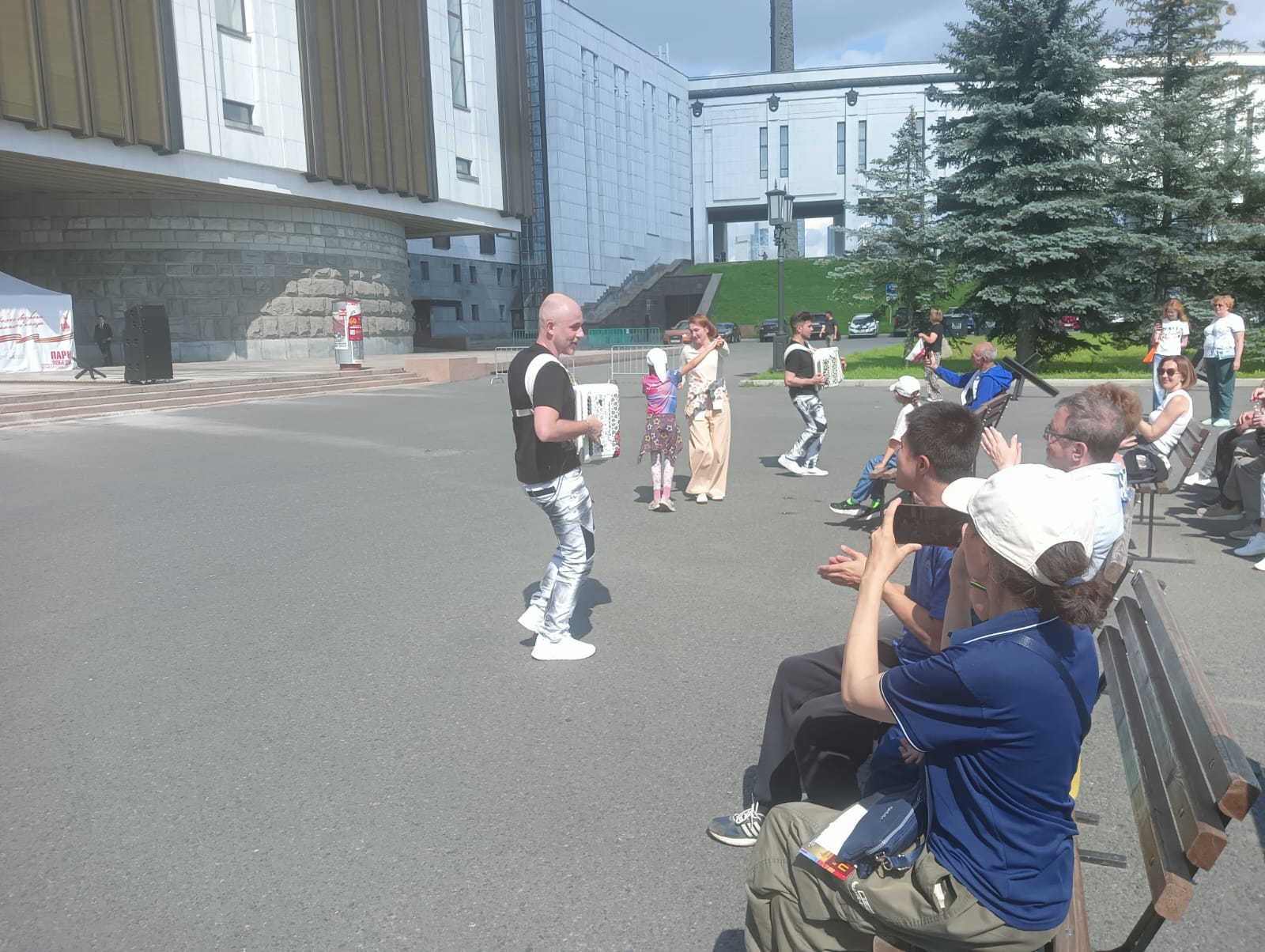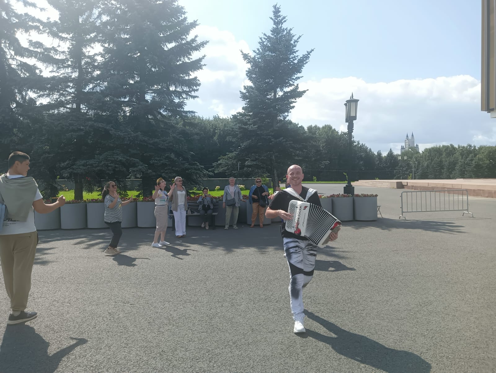 «Мы очень благодарны организаторам за возможность выступать на такой сцене и порадовать публику нашим творчеством, поднять им настроение. Публика у Музея Победы собралась просто необыкновенная, нас очень тепло встретили. Мы гастролируем по всей стране, приезжаем с концертами, с мастер-классами. Сейчас мы готовимся к выступлению на территории Донецкой Народной Республики», — рассказал музыкант дуэта «Баян Микс» Иван Фирсанов.