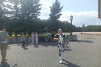 «Спасибо за возможность спеть на этой площадке, вспомнить всеми любимые фронтовые песни. Люди их знают. В наше время нужно поднимать патриотический дух, это очень важно. И наша задача состоит именно в этом. Все, что связано со временем Великой Отечественной войны, для меня свято. Мой прадед воевал, был танкистом. Хорошо, что в Музее Победы и в Парке Победы туристы могут буквально увидеть историю, которая была связана с тем тяжелейшем временем для всего советского народа. Нам очень важно сохранять и почитать эту страшную историю», — отметил музыкант дуэта «Баян Микс» Алексей Далматов.