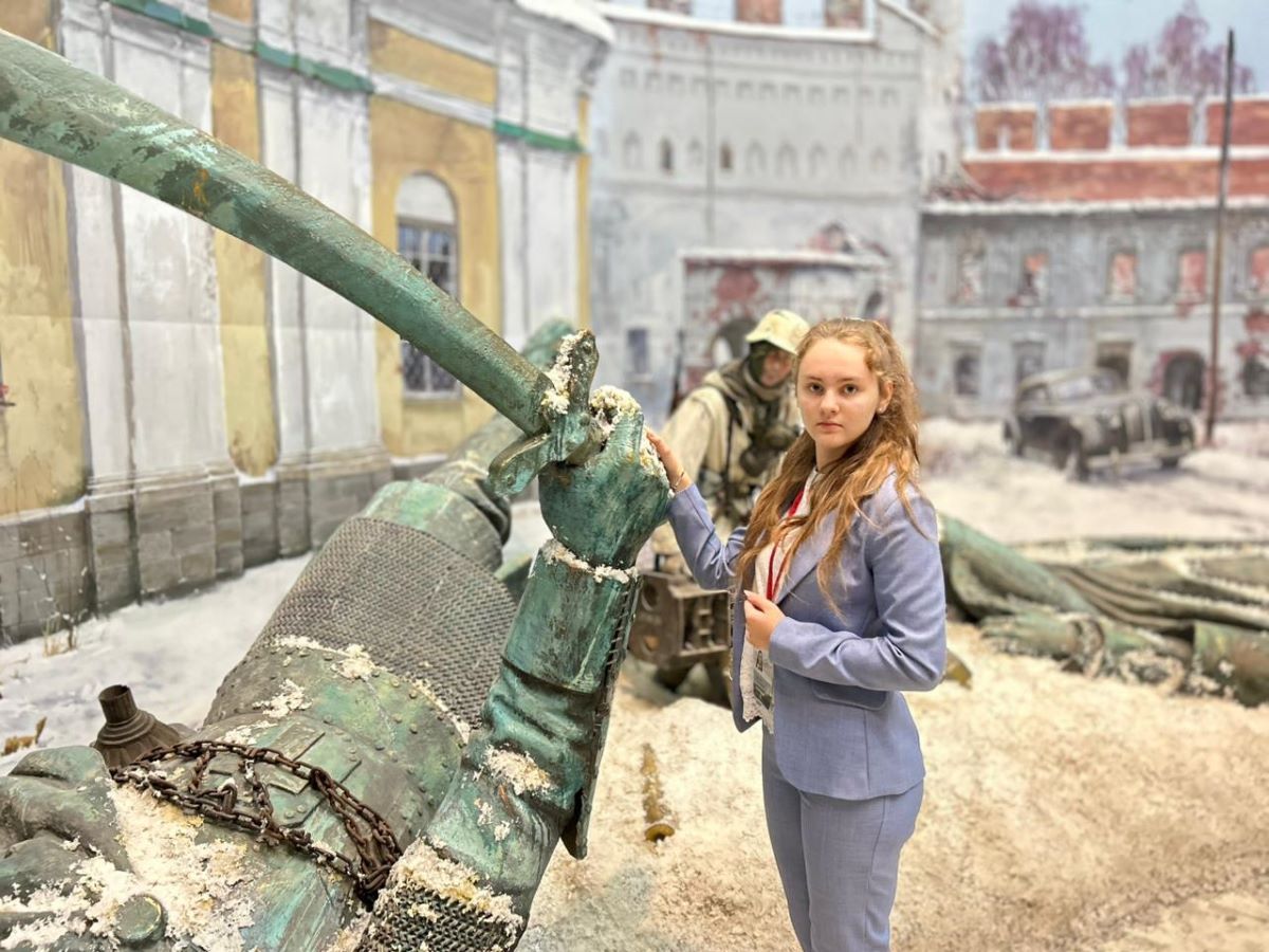 Начнем с того, что я с детства очень интересовалась историей нашей страны, и в том числе историей Великой Отечественной войны и моей семьи. Я учусь в московской школе № 1944, перешла в 8-й класс. В 2022 году в школе я узнала о проекте «Школьный Музей Победы» (Всероссийская программа развития деятельности школьных музеев, которую реализует Музей Победы. — Прим. ред.) и мне предложили принять в нем участие. Я стала активистом нашего школьного музея, мы участвовали в различных проектах «Школьного Музея Победы». После мне предложили стать активистом Детского общественного совета Музея Победы. Я, конечно же, согласилась. И потом в Музее Победы мне предложили принять участие в проекте «Дети — детям». Этот проект направлен на проведение экскурсии своим сверстникам. Я прошла обучение, где штатные экскурсоводы нам проводили как технические экскурсии, так и полные экскурсии. Также мы изучали экспозицию, по которой учились, самостоятельно. Я училась по экспозиции «Подвиг Народа», сдала экзамен по ней в апреле этого года, после чего стала работать в музее как внештатный экскурсовод.
