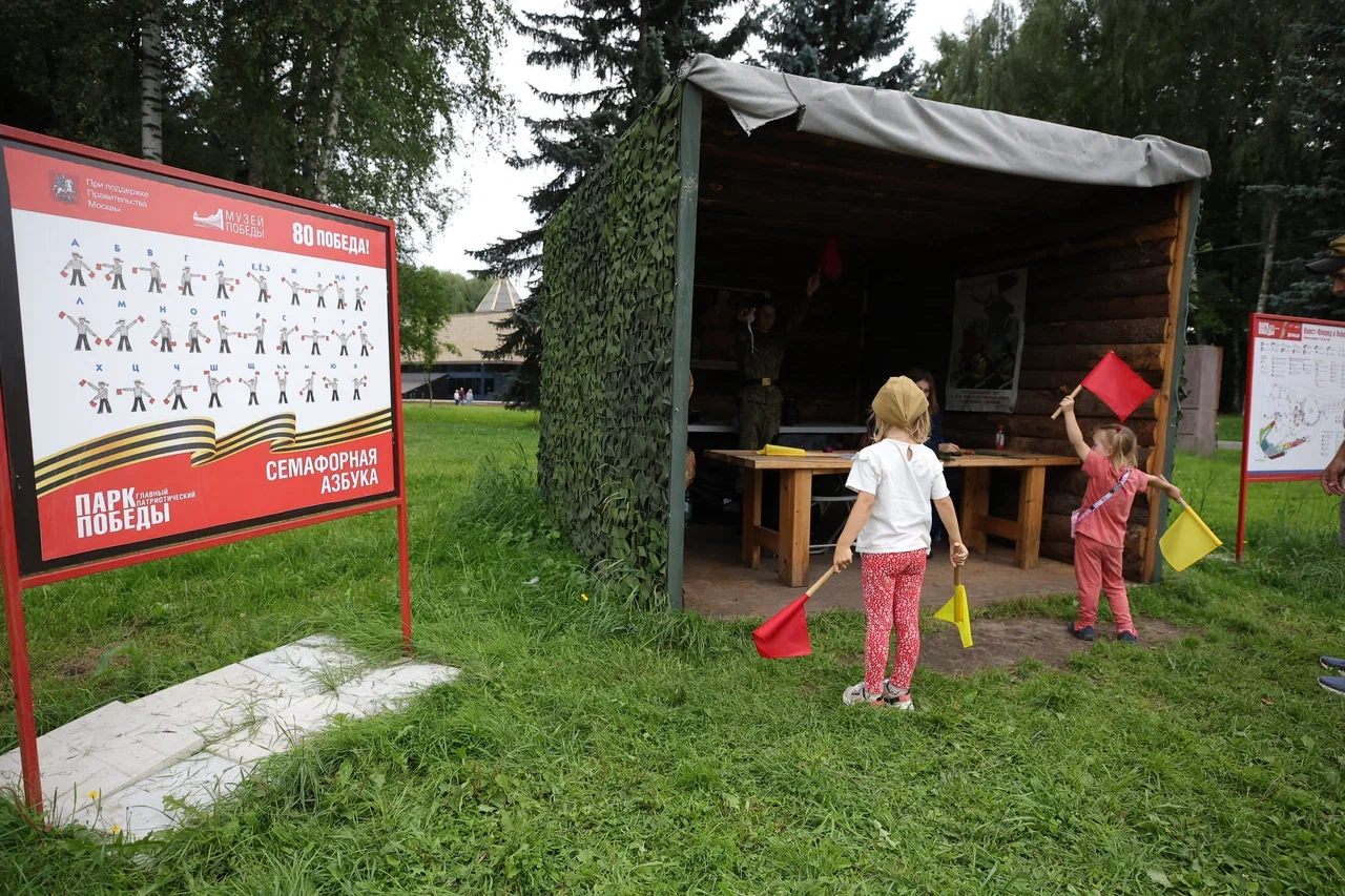 Специальная программа на этот раз приурочена ко Дню фронтовой собаки, который отмечается 19 августа. На площадках «Военная разведка» и «Спасение раненого бойца» инструкторы рассказали о службе собак-диверсантов и собак-санитаров. Реконструкторы в форме сотрудников НКВД, патрулирующие парк, провели викторину о профессиях служебных собак. Юные участники программы в «Игротеке» разгадывали ребусы и головоломки о четвероногих героях.