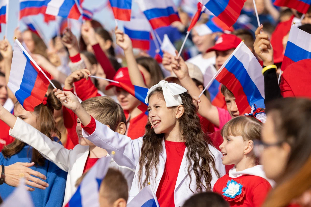 Во время исполнения песни все участники патриотической акции подняли 89 российских флагов — по количеству регионов нашей страны, а завершился клип ярким флешмобом, во время которого около 400 детей выстроились в цветах российского триколора.