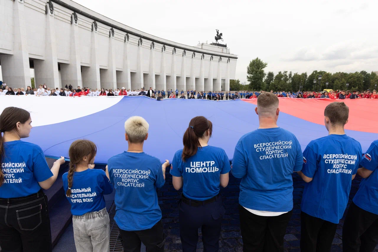 В День Государственного флага России перед Музеем Победы на Поклонной горе развернули триколор площадью около тысячи квадратных метров, занесенный в «Книгу рекордов и достижений» страны.