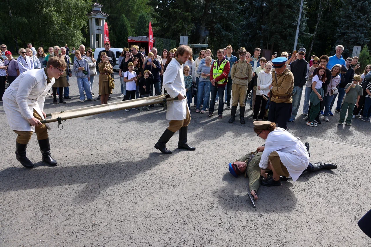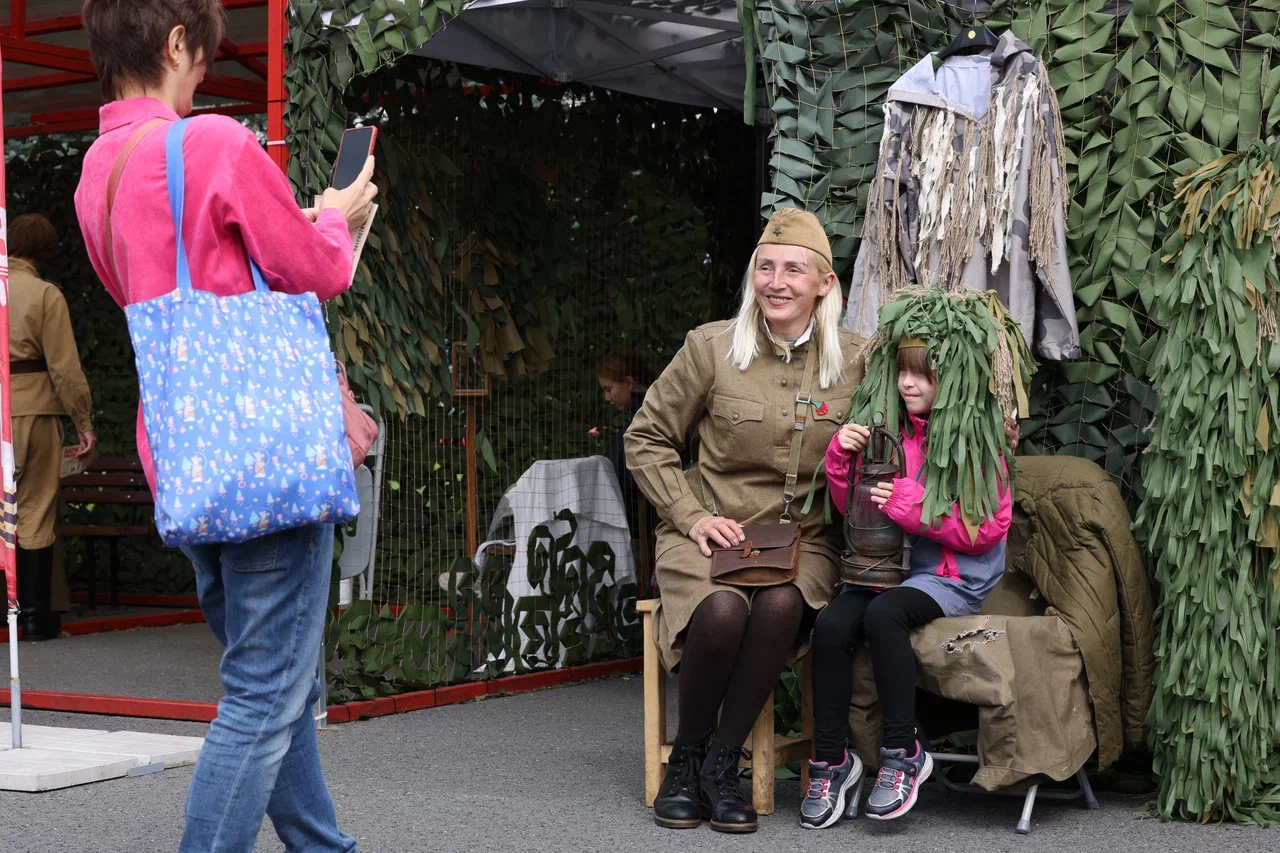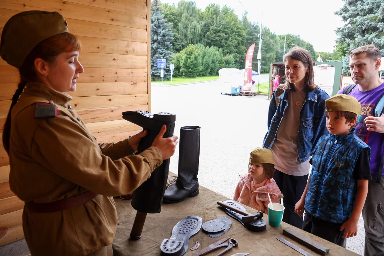 Гостей Парка Победы традиционно встречали реконструкторы в военной форме. В различных локациях дети и взрослые вживались в роль разведчиков и доставляли зашифрованные донесения, разбирались, что было у солдат в вещмешках в годы Великой Отечественной, проходили полосу препятствий, наматывали портянки и учились устанавливать палатки.