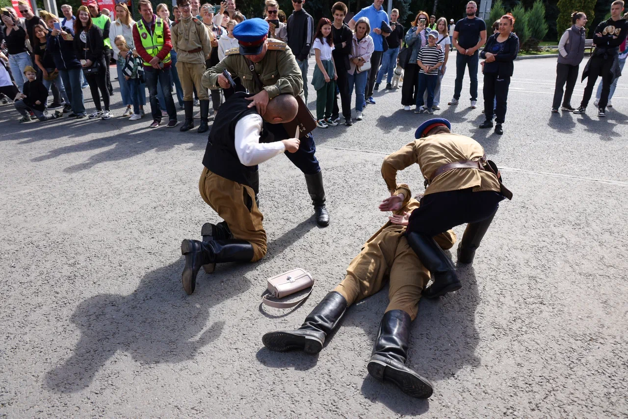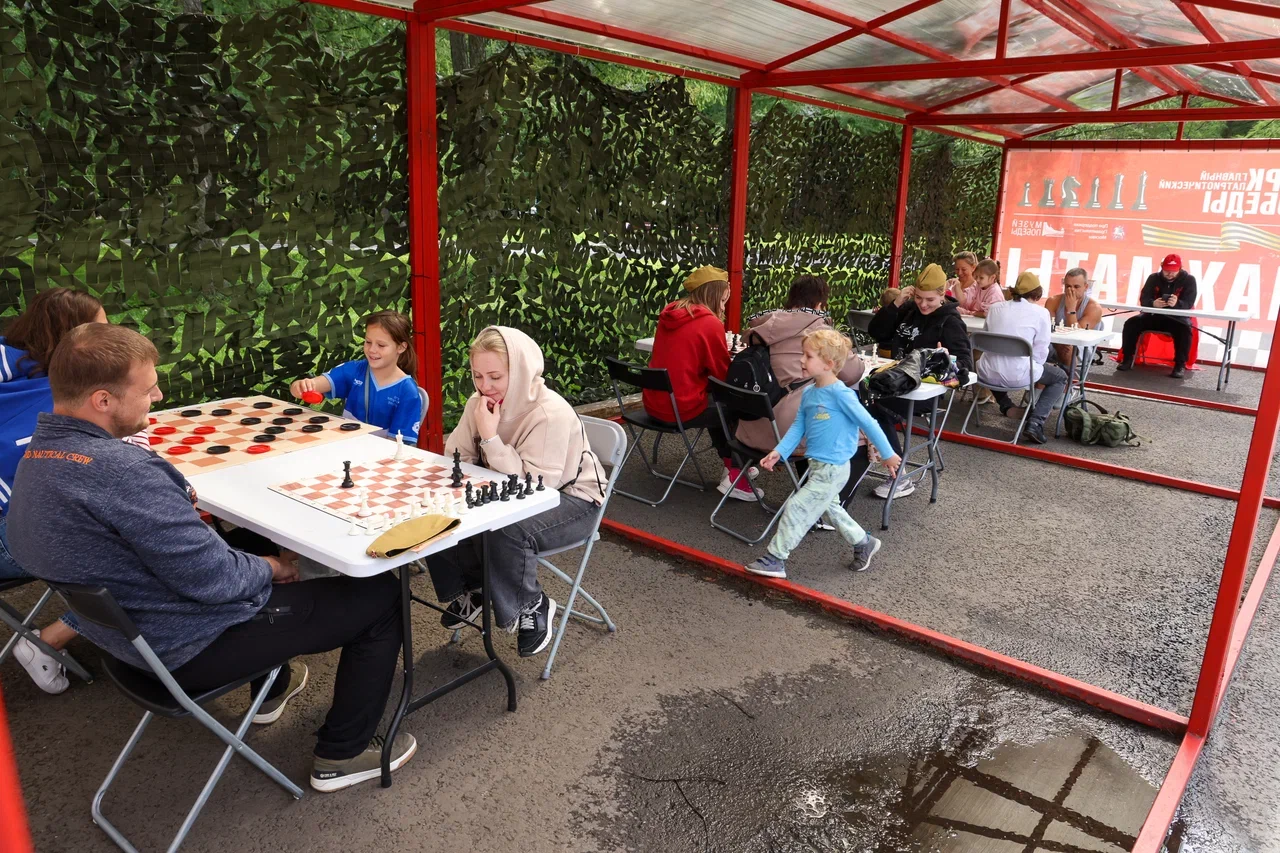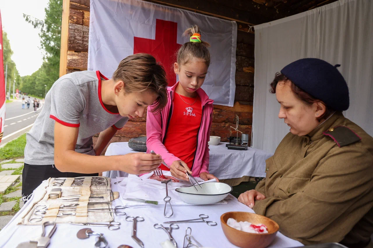 Гостей Парка Победы традиционно встречали реконструкторы в военной форме. В различных локациях дети и взрослые вживались в роль разведчиков и доставляли зашифрованные донесения, разбирались, что было у солдат в вещмешках в годы Великой Отечественной, проходили полосу препятствий, наматывали портянки и учились устанавливать палатки.