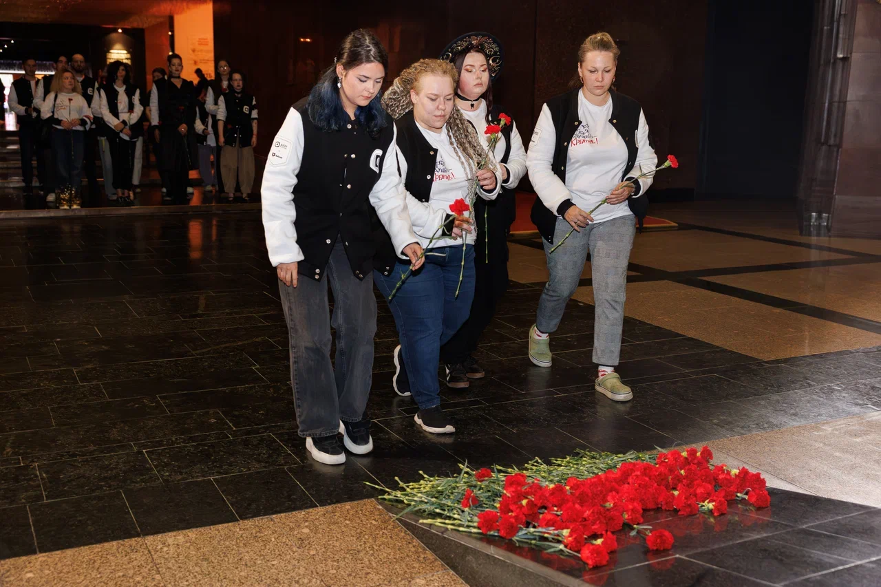 В Музее Победы финалисты Национального открытого чемпионата творческих компетенций ArtMasters возложили цветы к монументу «Скорбь» и почтили память героев Великой Отечественной. Также молодые люди побывали на экскурсии по масштабной экспозиции «Подвиг Народа».