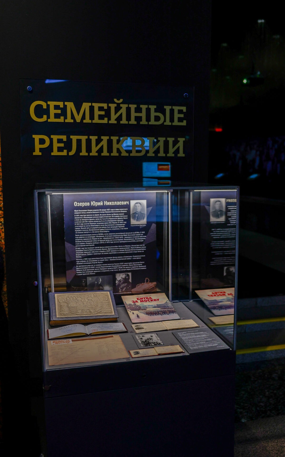 В Музее Победы открылась обновленная выставка «Семейные реликвии» ко Дню российского кино. Мини-экспозицию посвятили кинорежиссеру, народному артисту СССР Юрию Озерову и его фильму «Битва за Москву», вышедшему на экраны 40 лет назад.