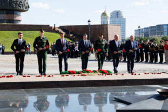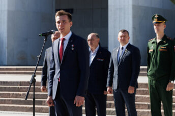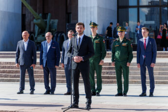 «Позвольте от имени генерального директора Музея Победы Александра Яковлевича Школьника и себя лично поприветствовать вас здесь, у святого Вечного огня, у стен Музея Победы вас — молодых ребят, которые являются нашими, по сути, коллегами. Мы выполняем святую миссию, мы сохраняем историческую память и передаем ее нашим будущим поколениям. Хочется пожелать вам, чтобы все время, которое вы проведете здесь, было наполнено потрясающими эмоциями, яркими впечатлениями и вы захотели бы вернуться сюда снова и снова», — сказал заместитель генерального директора Музея Победы Тимофей Кустов.