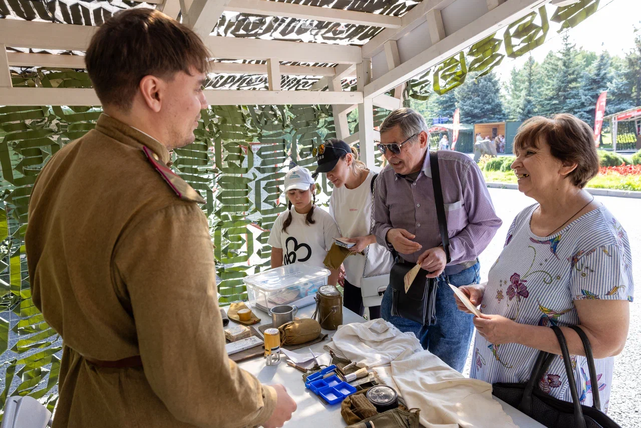 В этот день около Музея Победы работали 80 интерактивных площадок с элементами исторической реконструкции, воссоздающих атмосферу 1940-х годов. Организаторы подготовили экскурсии, мастер-классы, спортивные соревнования и творческие состязания. Гости проходили интерактивные локации «Что у солдата в вещмешке?», «Письмо защитнику Отечества», «Сборка-разборка АК-74», фотозону с военным ретроавтомобилем 1940-х годов. На площадке «Курс молодого бойца» проходили полосу препятствий, проверили свои силы в перетягивании каната, обучились штыковому бою, прошли тропой сапера и многое другое.