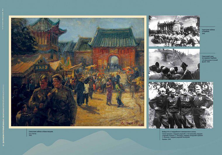 Представленная выставка расскажет о боевых действиях советских войск на Дальнем Востоке в августе 1945 года. В экспозиции покажут уникальные фронтовые зарисовки, плакаты, документы и фотографии, которые повествуют о мужестве, отваге и героизме участников сражений. Всего гости увидят более 120 оцифрованных материалов из фондов Музея Победы, которые посвящены завершающему этапу Второй мировой войны. На фотографиях военного времени можно увидеть военачальников и простых бойцов, переброску советских войск на Дальний Восток. Также исторические документы позволят больше узнать о ходе Курильской десантной операции, о Южно-Сахалинской, Хингано-Мукденской, Харбино-Гиринской наступательных операциях.