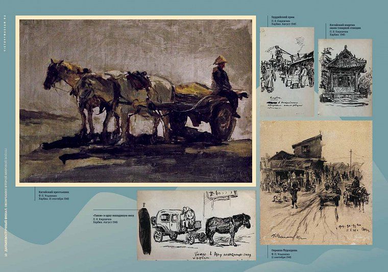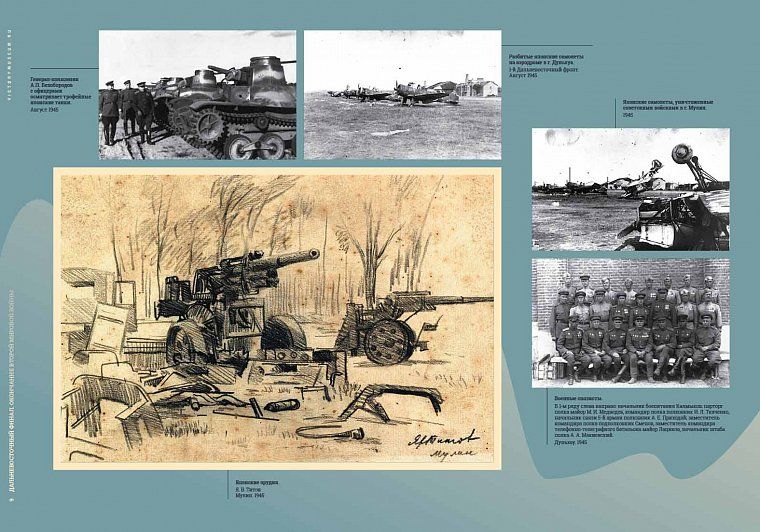 В выставку вошла уникальная подборка графики художников-грековцев — Павла Кирпичева, Федора Усыпенко, Дмитрия Пяткина, Ярослава Титова, Василия Арлашина. Все они в августе 1945 года сопровождали советские силы на Дальнем Востоке. Работы художников показывают не только стремительный разгром японских вооруженных сил, но также советских и японских бойцов, местных жителей, природу края.