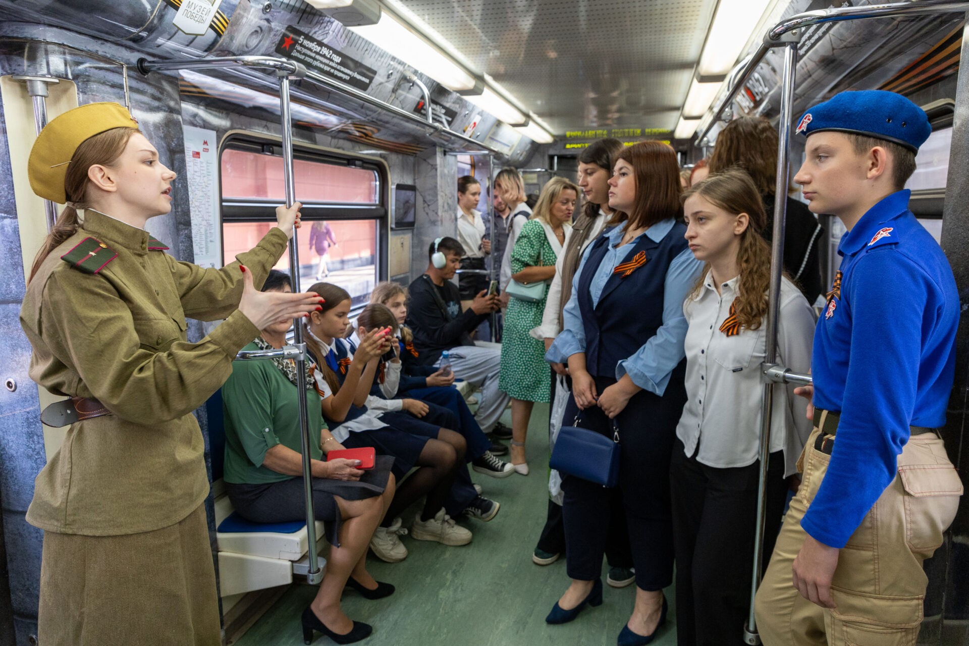 Первая публичная «Экскурсия на колесах» по тематическому поезду «Путь к Победе», посвященному новой экспозиции Музея Победы, состоялась в московском метро. Первыми слушателями стали школьники из Москвы, Подмосковья, Санкт-Петербурга и других регионов.