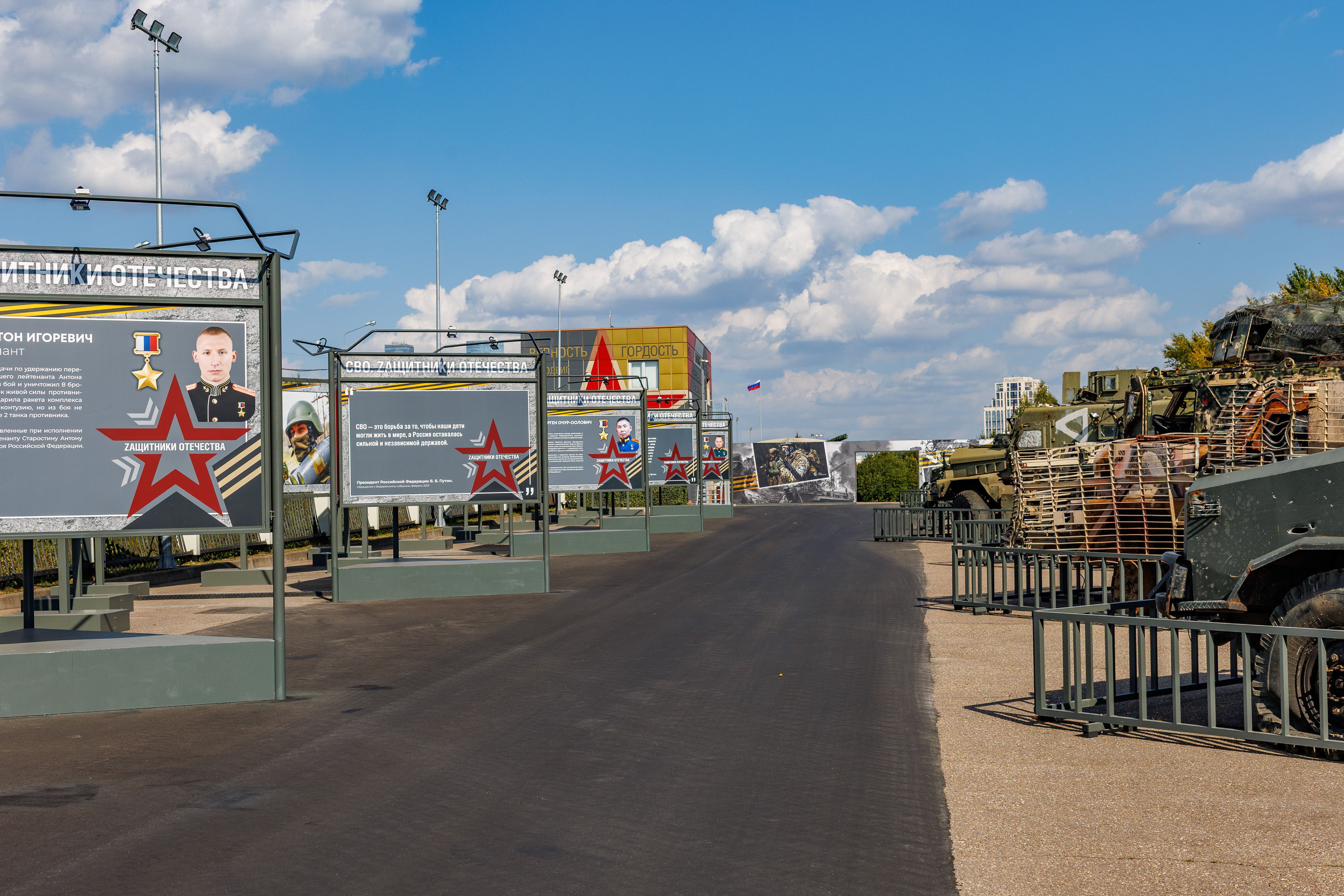 Новый масштабный проект открылся сразу в двух локациях: в главном здании музея на Поклонной горе и в филиале — музее «Г.О.Р.А.». Здесь под открытым небом на площади 8 тысяч квадратных метров представлены более 20 образцов подбитой трофейной военной техники стран НАТО и Украины, уничтоженных в ходе СВО. Среди экспонатов — бронеавтомобили «Козак-5», BMC Kirpi, Roshel Senator, International MaxxPro, боевые машины пехоты Marder 1A3 и Bradley, танк M1A1SA Abrams и другие. Экспозицию дополняют фотоработы военных корреспондентов РИА Новости и ТАСС, запечатлевших события спецоперации и подвиги наших бойцов.