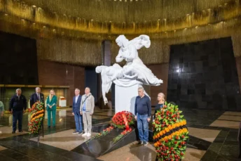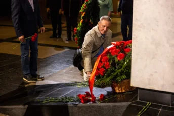 В Музее Победы гости почтили память погибших на фронтах Великой Отечественной войны и возложили цветы в Зале Памяти и Скорби, а также посмотрели 3D-инсталляцию «Дорога к победе» в Зале Славы.