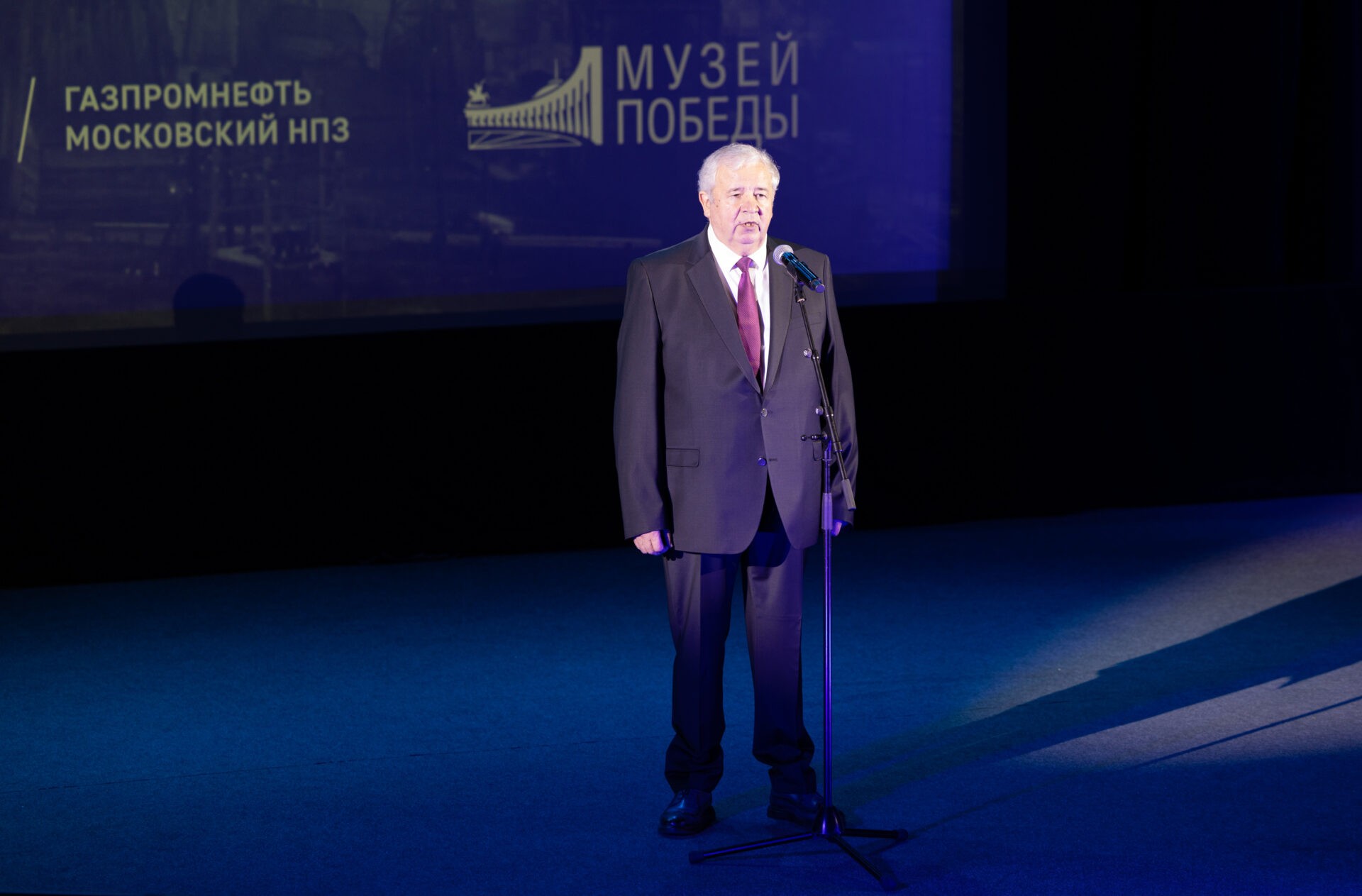 «В Музее Победы мы показываем и достижения, и то, что делал ваш завод в годы Великой Отечественной войны. В каждой экспозиции практически, и в «Подвиге Народа», и в «Битве на Москву. Первая Победа», мы видим тех, кто работал на заводе, кто осуществлял связь промышленности и военнослужащих. В нашем историческом депозитарии «Лица Победы» находятся более трехсот имен ваших родных и близких. И мы призываем вас пополнить этот народный банк данных. В нем уже миллион двести тысяч занесено личных историй. На Московском НПЗ в годы Великой Отечественной войны, конечно, не 300 человек трудилось, а больше. Поэтому мы призываем вас, чтобы вы в том числе активизировали эту работу, для того чтобы увековечить память своих родных и близких, тех, кто отдавал свое здоровье, жизнь, чтобы Победа достигалась быстрее», — обратился к залу заместитель генерального директора Музея Победы вице-адмирал Федор Смуглин.