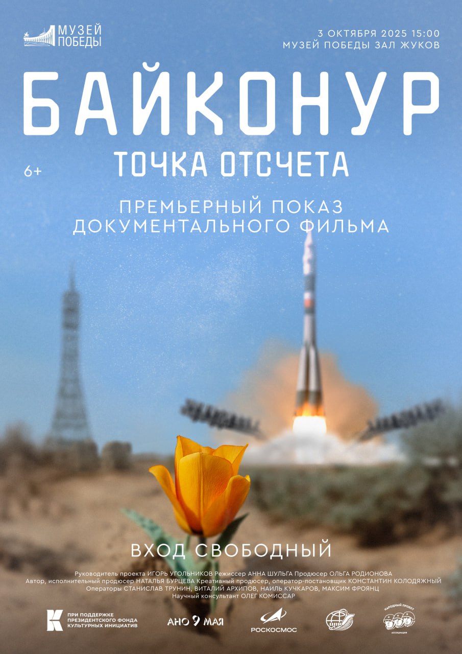 Посетить премьеру фильма «Байконур. Точка отсчета» в Музее Победы смогут все желающие бесплатно. История космодрома будет интересна самым разным зрителям: школьникам и студентам — как живой урок истории и науки, любителям документального кино — как честный и эмоциональный рассказ, ветеранам космодрома и их семьям — как знак уважения и всем, кто мечтает о звездах, — как возможность прикоснуться к истокам великого пути.