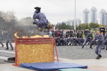 Одним из самых зрелищных событий стали показательные выступления военнослужащих 55-й дивизии Центрального округа войск национальной гвардии, которые продемонстрировали приемы рукопашного боя, задержание правонарушителей, действия кинологических подразделений. Желающие могли проверить себя на меткость в интерактивном тире и научиться метать ножи.
