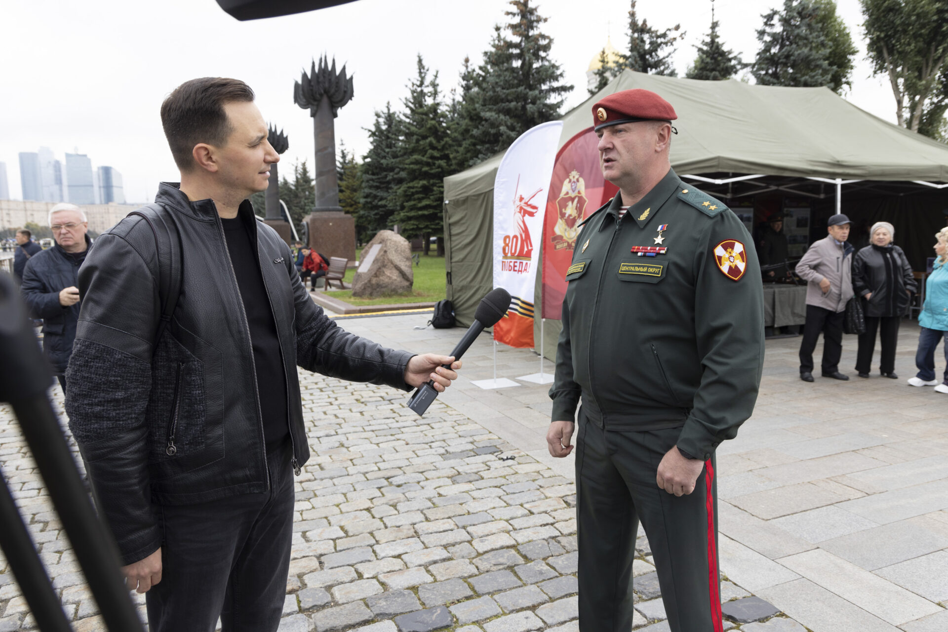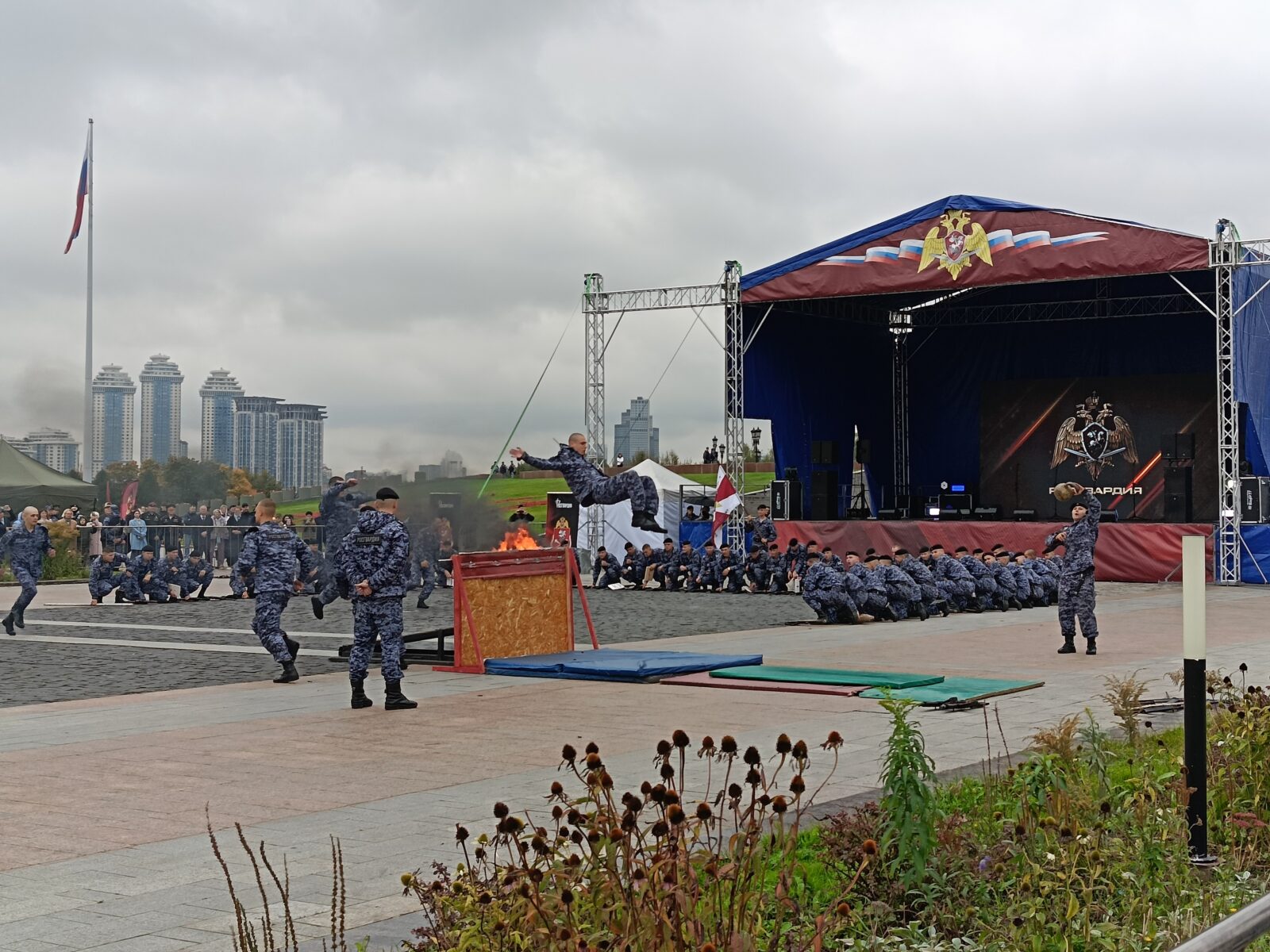 «Сегодня Росгвардия в этом замечательном, святом для всех нас и для всей России месте — возле Музея Победы — показывает свои самые лучшие качества на примере лучших военнослужащих, которые демонстрируют не только приемы рукопашного боя, но и строевую и полевую выучку. Также в рамках данного мероприятия развернуты ряд локаций для того, чтобы жителей и гостей нашего города можно было ознакомить с историей не только войск национальной гвардии, но и с историей России. В том числе посмотреть и потрогать руками, какое вооружение и военная техника стоят на сегодняшний день в войсках Росгвардии. Ну и, конечно же, посмотреть и ознакомиться со всеми различными направлениями деятельности, служебно-боевой деятельности», — сообщил заместитель командующего Центрального округа по военно-политической работе войск национальной гвардии Анатолий Грушевский.