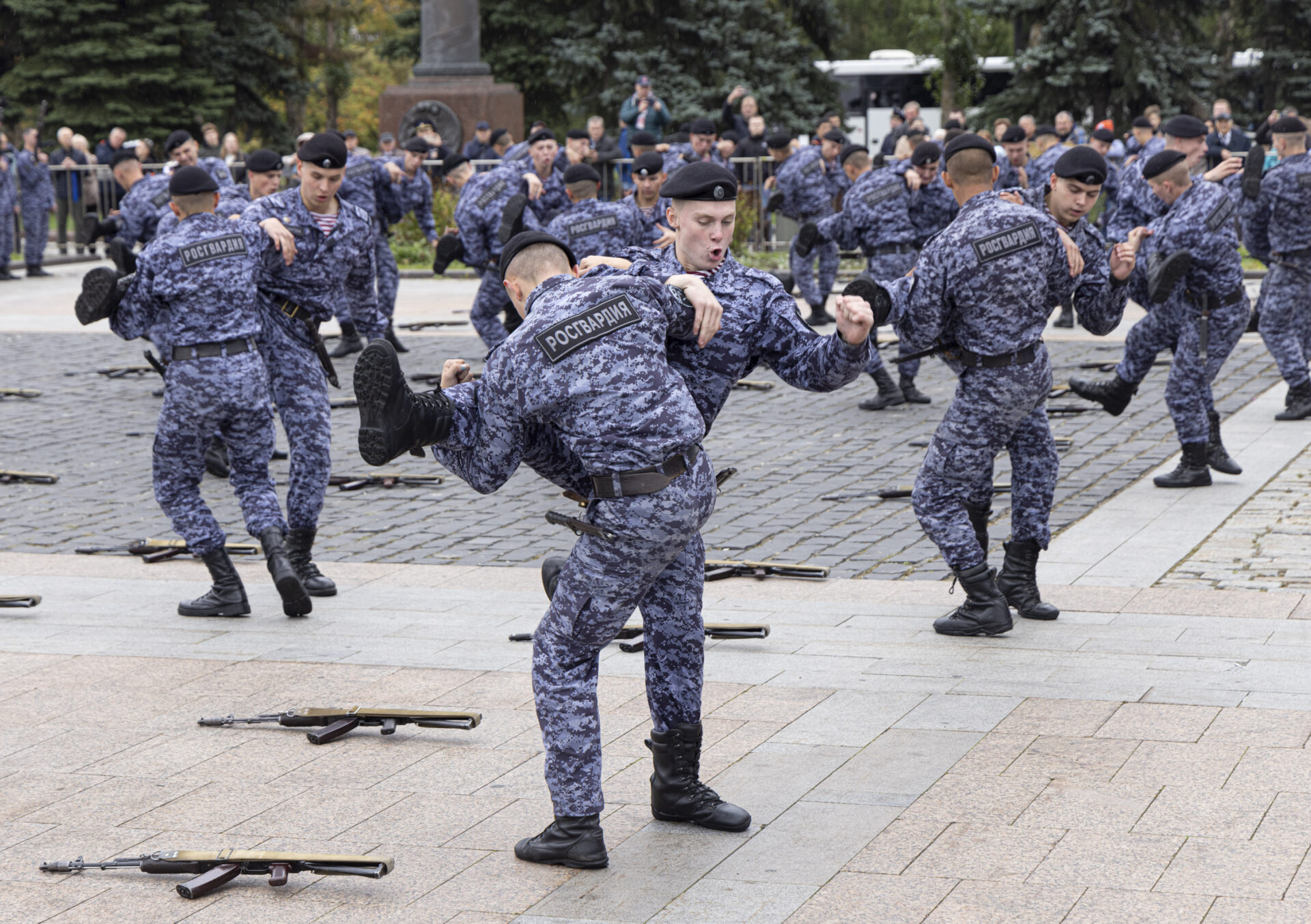 «Это все рабочие процессы в рамках подготовки и выполнения служебно-боевых задач. На сегодняшний день военнослужащие Росгвардии, особенно военнослужащие по призыву, которые ежедневно поступают на боевую службу, связанную с охраной общественного порядка и обеспечением общественной безопасности города Москвы, должны обладать и быть готовыми к любым изменением обстановки, поэтому те навыки, умения, которые демонстрируются сегодня здесь и сейчас, они входят в базовую программу», — отметил Анатолий Грушевский.