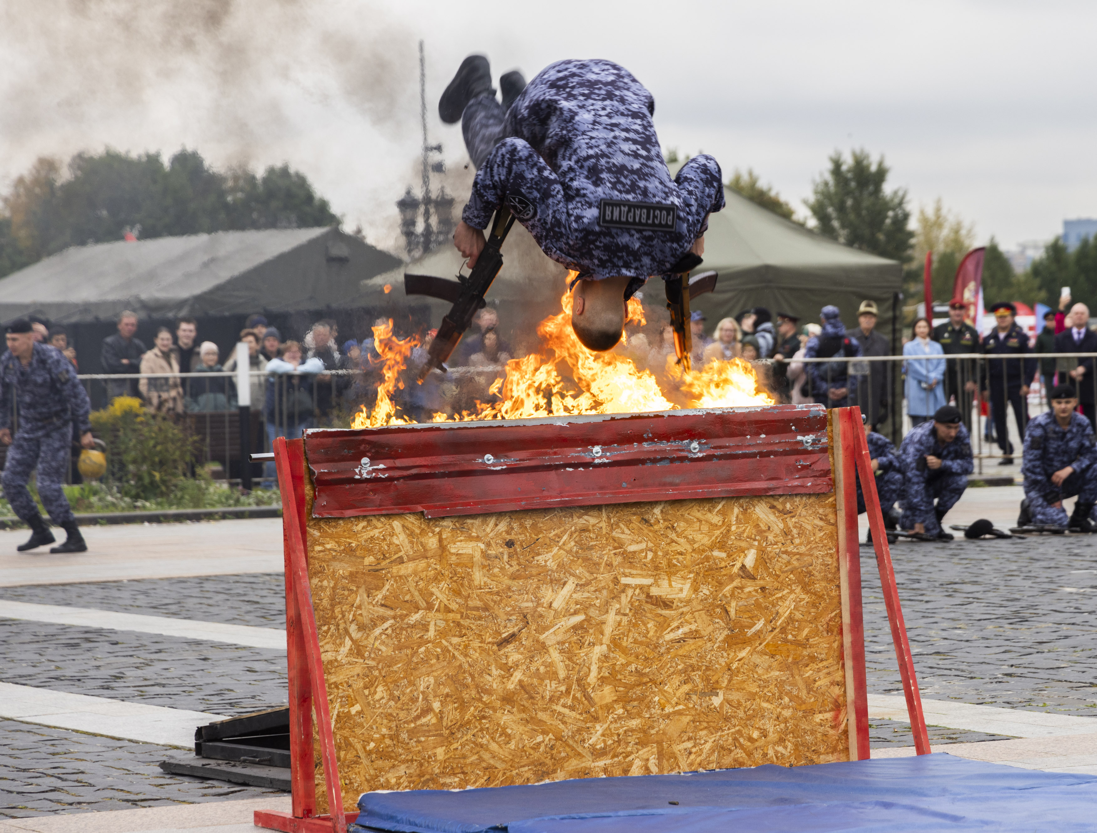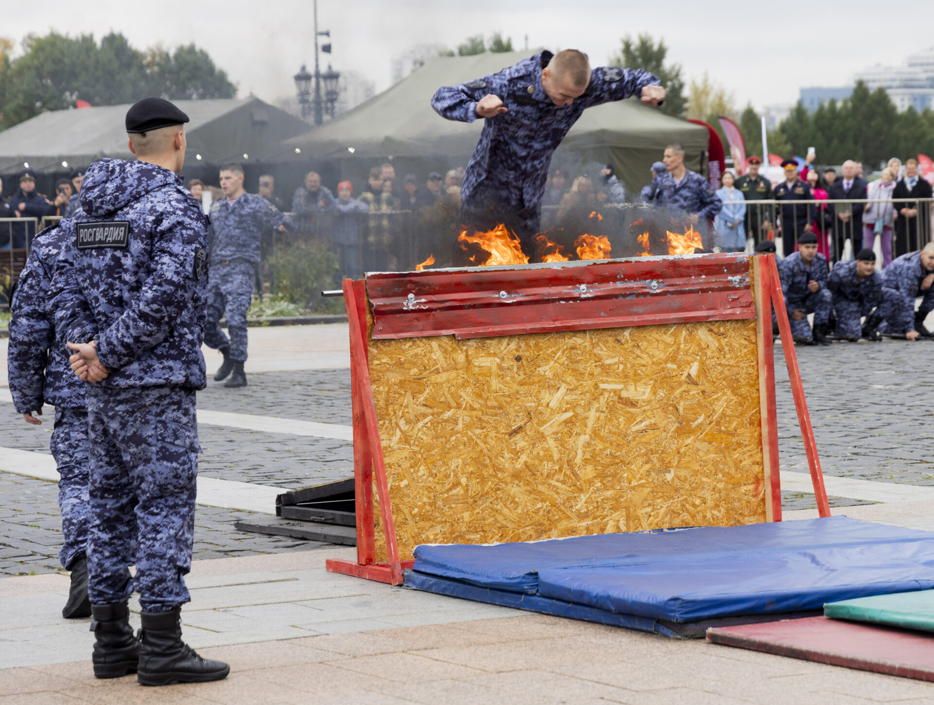 Одним из самых зрелищных событий стали показательные выступления военнослужащих 55-й дивизии Центрального округа войск национальной гвардии, которые продемонстрировали приемы рукопашного боя, задержание правонарушителей, действия кинологических подразделений. Желающие могли проверить себя на меткость в интерактивном тире и научиться метать ножи.