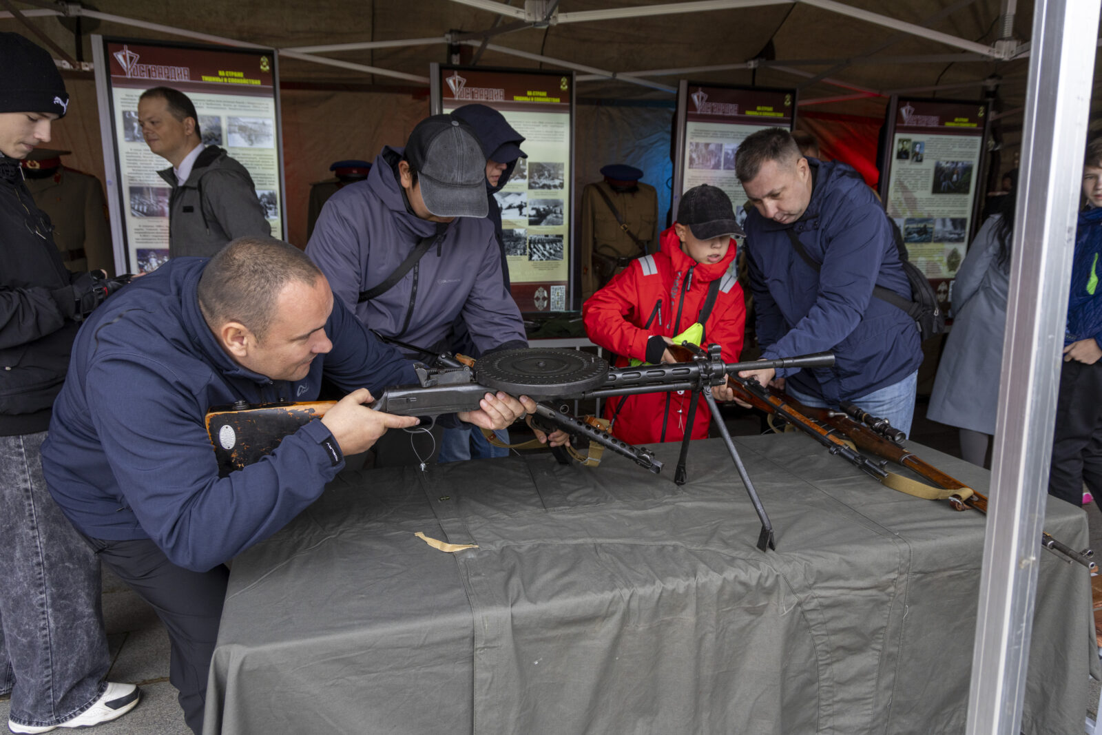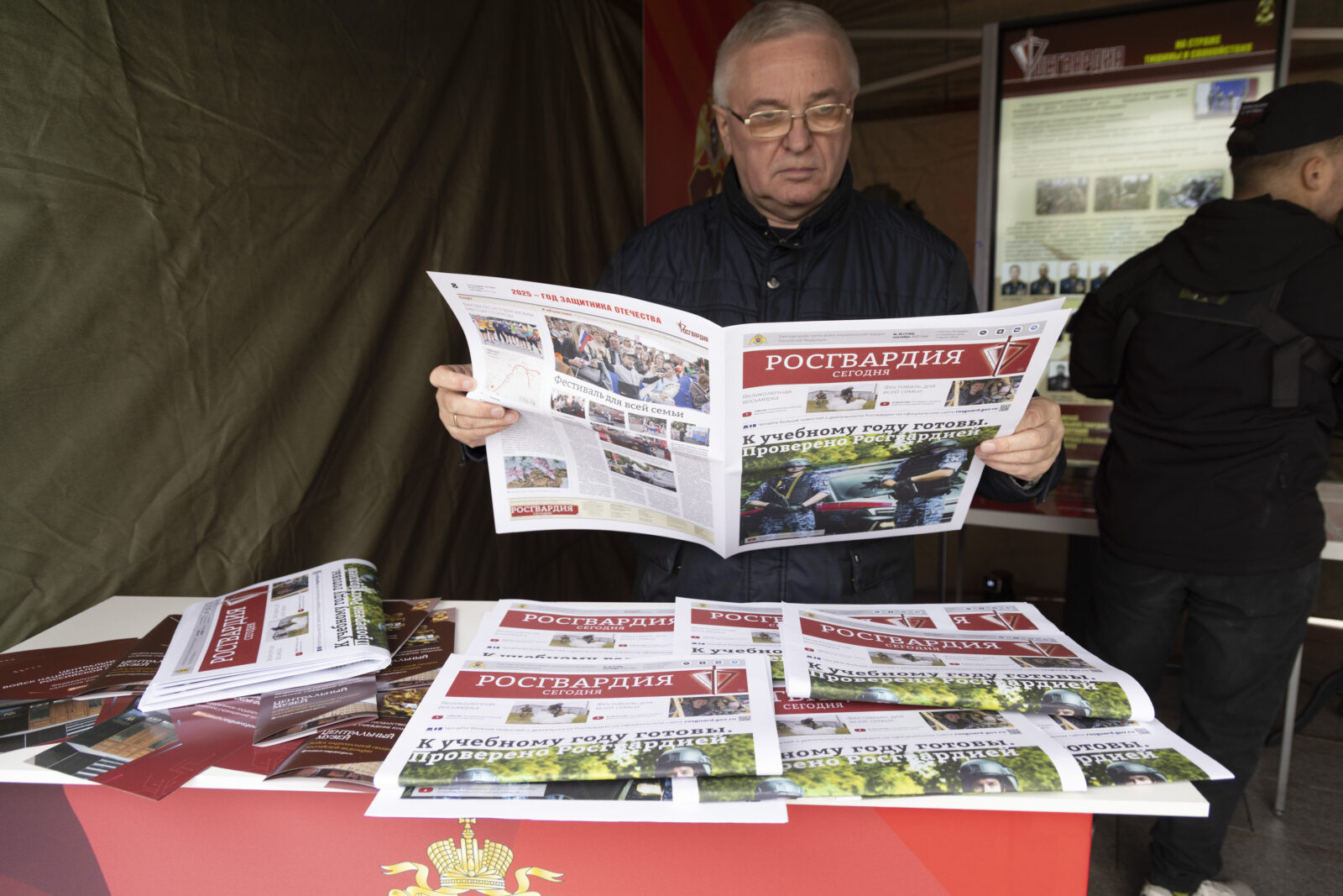 «Здесь выставлена представительская выставка, которая рассказывает об истории образования, возникновения, развития войск Национальной гвардии — и до сегодняшнего дня, где мы рассказываем об участии наших военнослужащих в специальной военной операции. Здесь представлены образцы военно-исторической формы одежды, предметы, оружие, ну и в том числе оружие Победы, с которым мы знакомим жителей и гостей столицы. Гости подходили из Китайской Народной Республики, Германии, Сирии. Мы все показывали, рассказывали с помощью переводчика. Также здесь у нас можно написать письма непосредственно нашим военнослужащим, которые принимают участие в специальной военной операции, что иностранные гости с удовольствием сделали, после наших объяснений», — рассказал военнослужащий Центрального музея войск национальной гвардии Максим Шелковый.