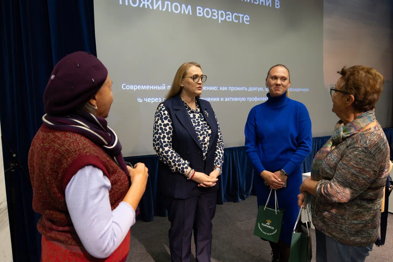Лекцию для пожилых гостей Музея Победы провела геронтолог (специалист, изучающий процессы старения. — Прим. ред.) Светлана Тихонова. Пенсионеры узнали о том, как поддерживать здоровье и активный образ жизни, научились распознавать возрастные риски и освоили методы профилактики заболеваний.