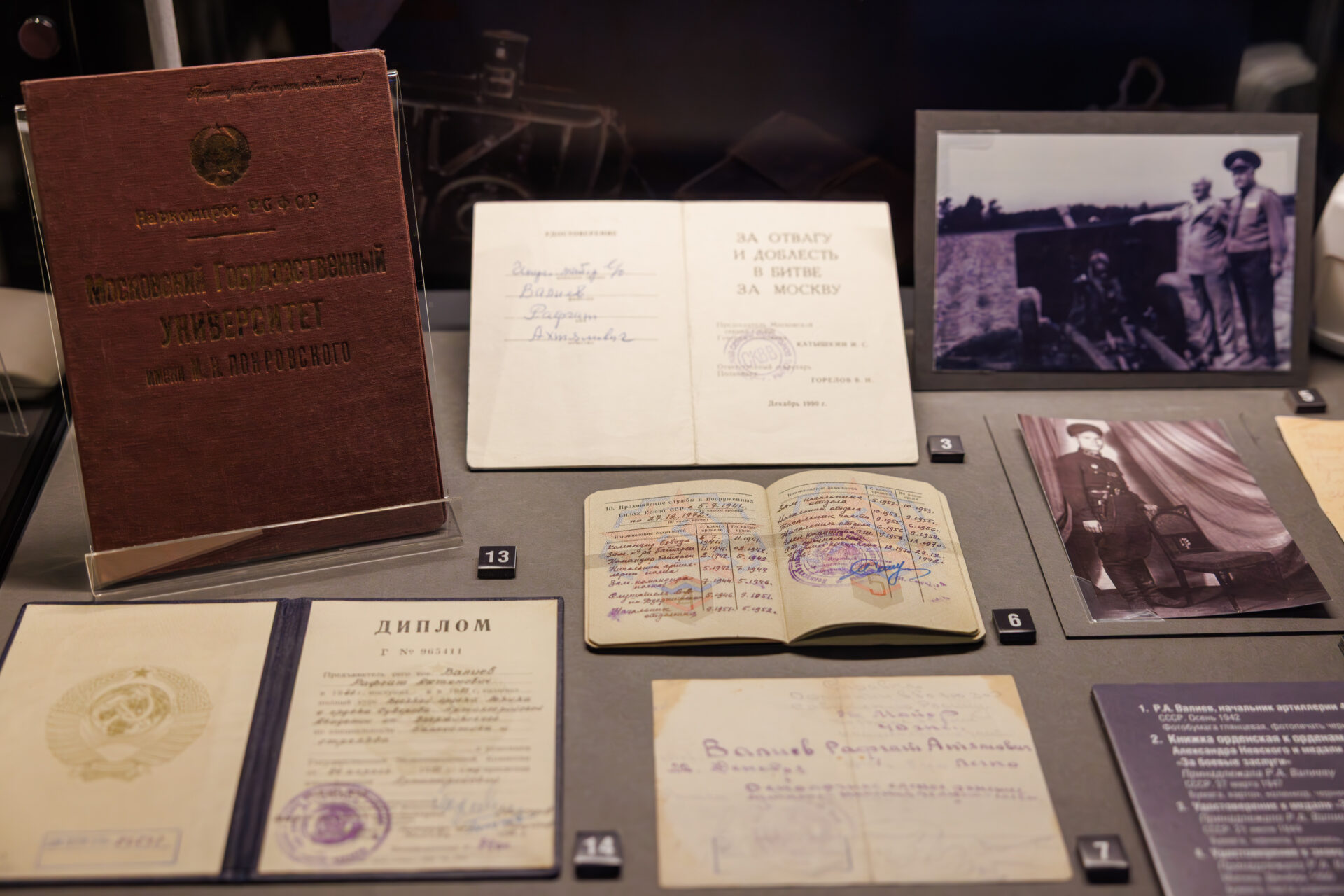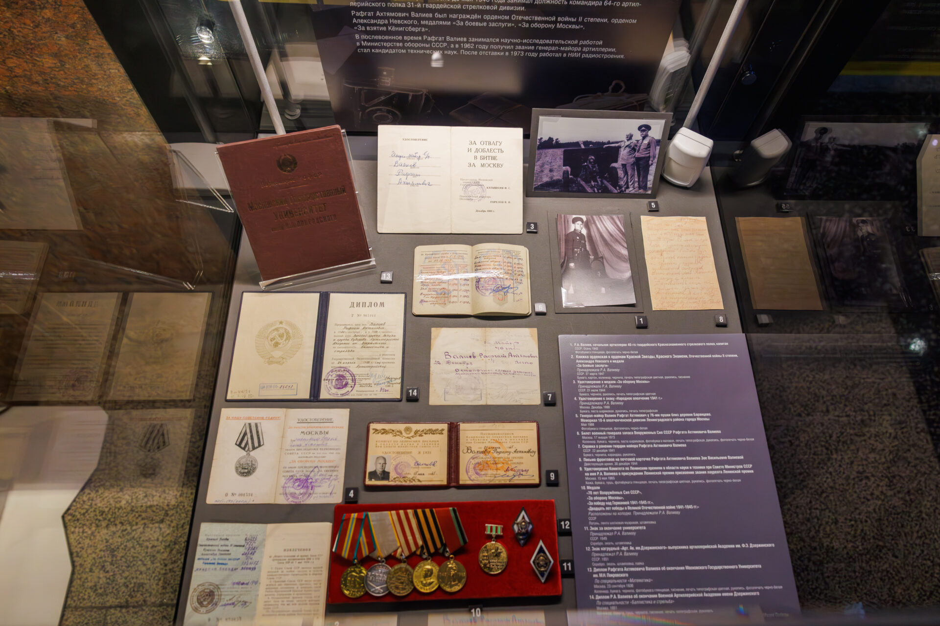 В Музее Победы открылась обновленная выставка «Семейные реликвии», приуроченная ко Дню Московского народного ополчения. В нее вошли реликвии командира огневого взвода 18-й Московской стрелковой дивизии народного ополчения (Ленинградского района) Рафгата Ахтямовича Валиева.