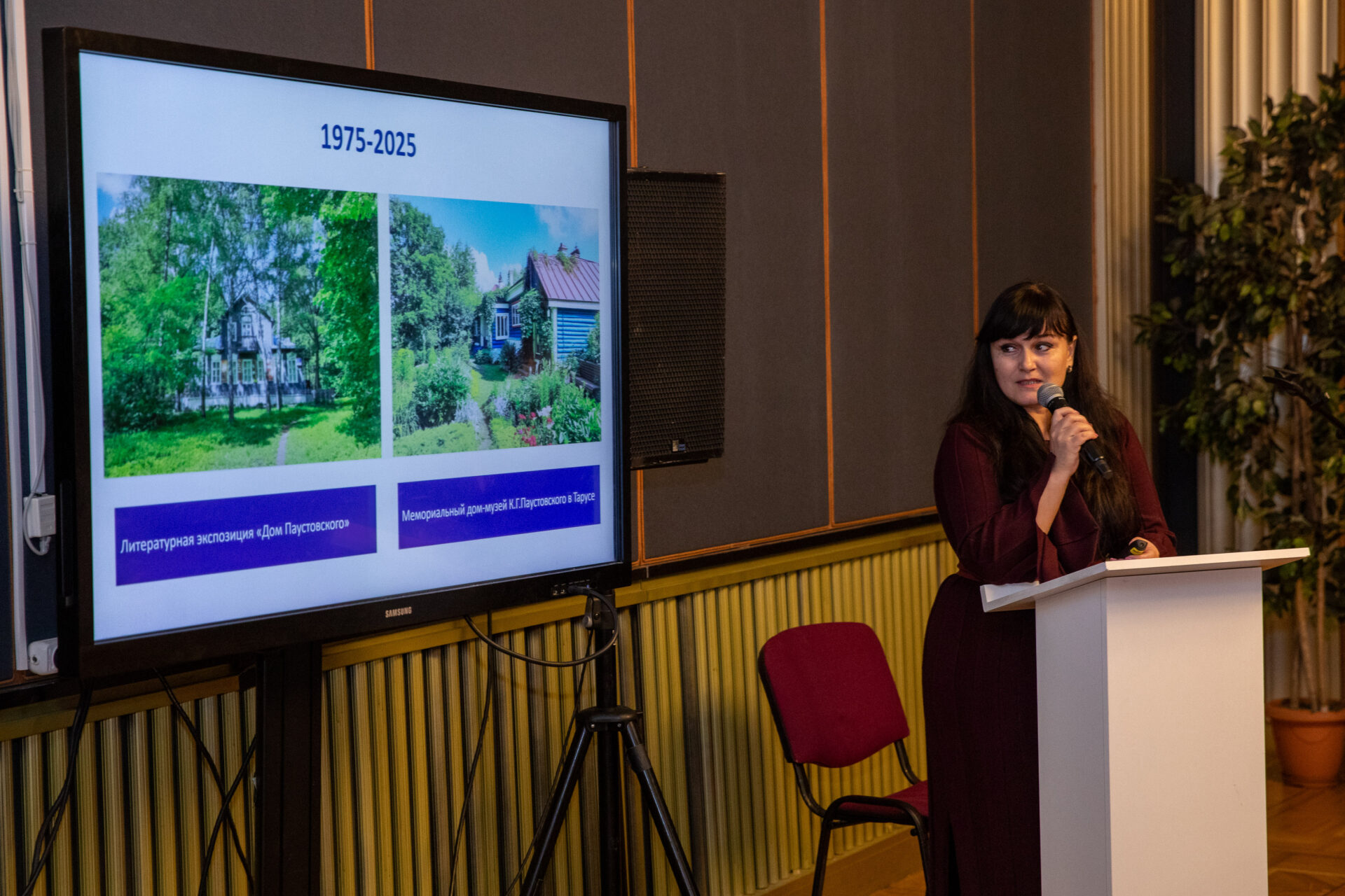 Она рассказала слушателям Академии Музея Победы о межмузейном сотрудничестве и участии Музея Паустовского в различных проектах, а также о том, как создавалась новая выставка «Писатели-фронтовики — ученики Паустовского».