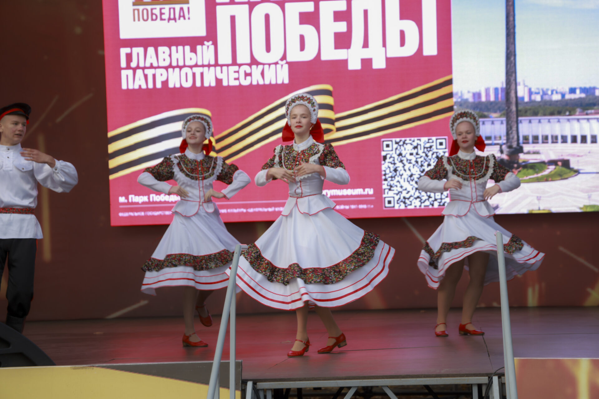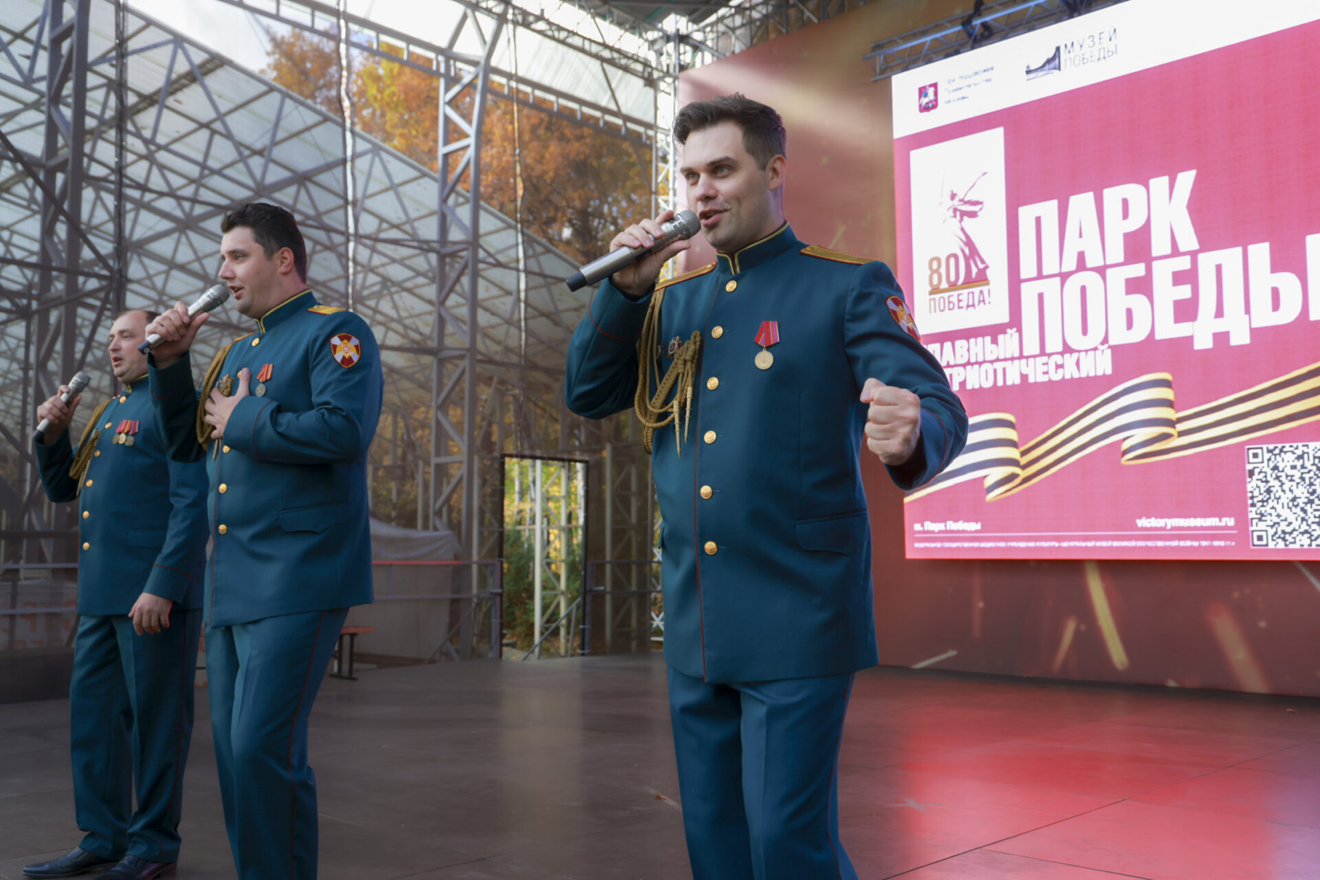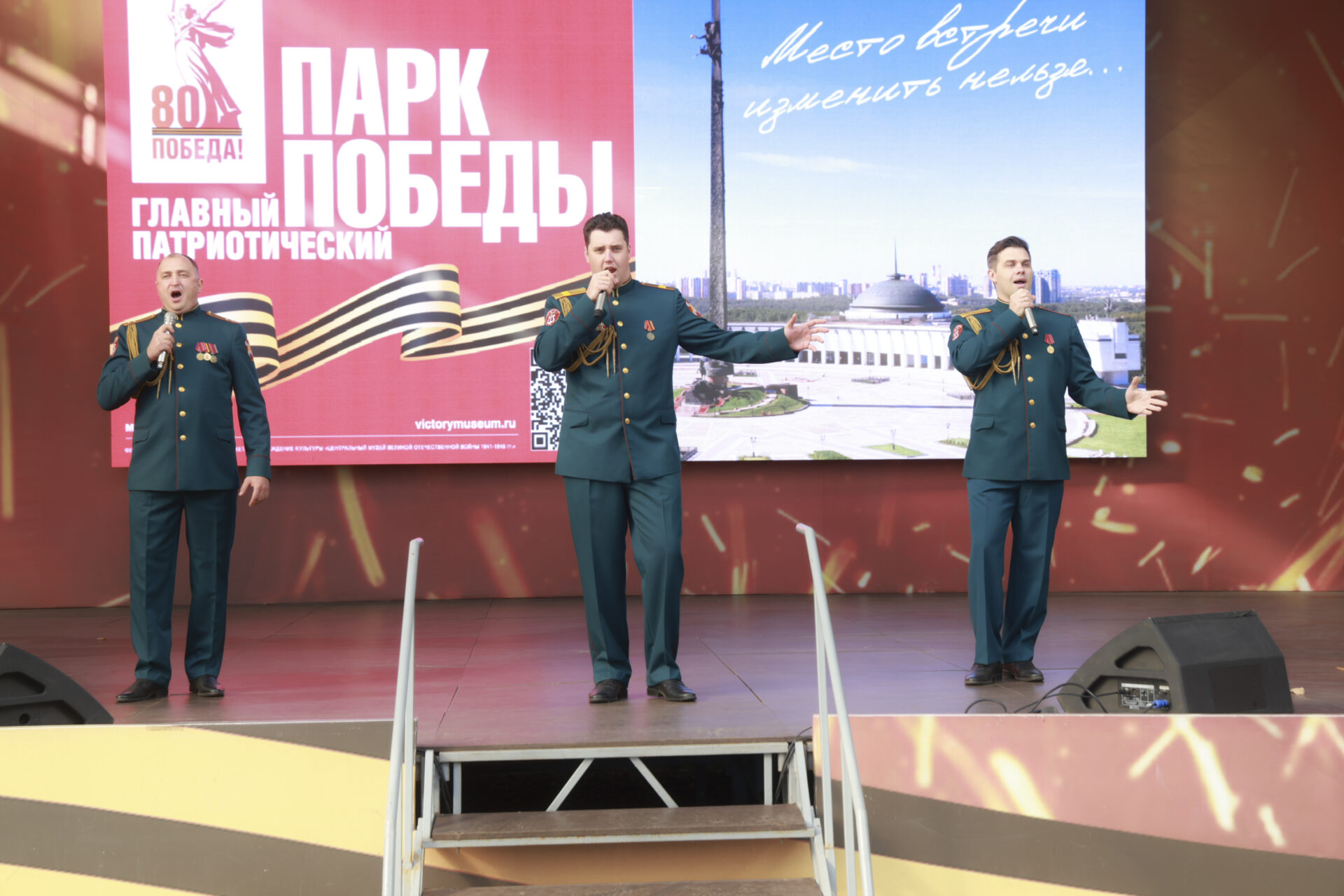 Концертная программа проходила сразу на нескольких площадках мемориального комплекса на Поклонной горе. Праздничную атмосферу на главной сцене филиала Музея Победы — музея «Г.О.Р.А.» для москвичей и гостей столицы создавал Ансамбль песни и пляски Центрального округа войск национальной гвардии РФ и других творческих коллективов Росгвардии.