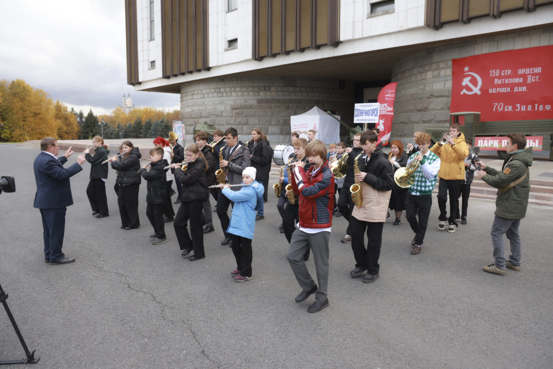 «Мы уже выступали в Парке Победы. И вот сегодня снова здесь — на закрытии сезона. Это вторая по значимости площадка в Москве после Красной площади. Поэтому считаем, что выступать здесь — очень почетно и значимо для нас. Ребята с энтузиазмом относятся, долго готовились, волнуются, потому что это очень ответственно», — рассказал руководитель духового оркестра «Геликон» Солнечногорской детской школы искусств, заслуженный работник культуры РФ Николай Ермаков.