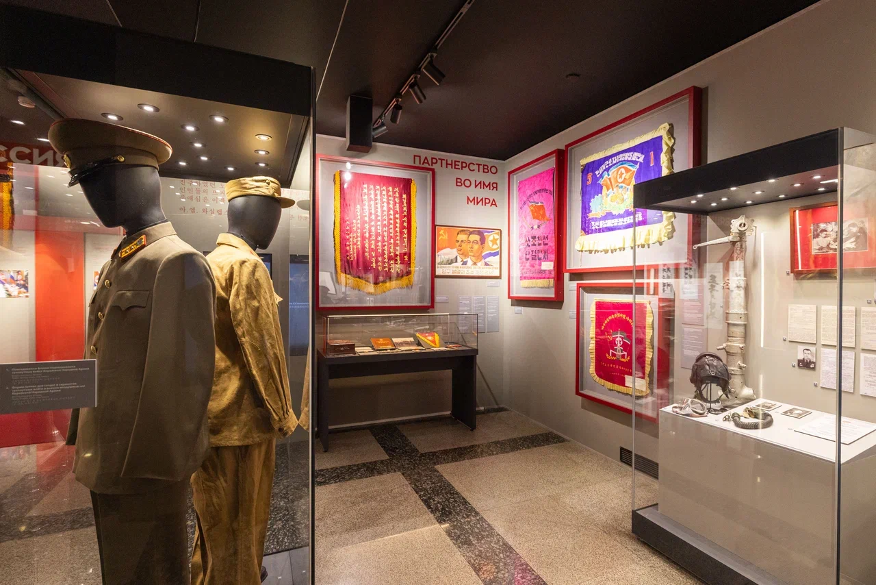Александр Школьник поблагодарил всех, кто принимал участие в создании выставки. Она состоит из нескольких разделов. В частности, посетители узнают о помощи Советского Союза военнослужащим КНДР во время Корейской войны 1950–1953 годов и увидят фотографии, наградные документы, личные вещи, предметы амуниции и вооружения советских летчиков, совершивших в небе Кореи более 19 тысяч вылетов.