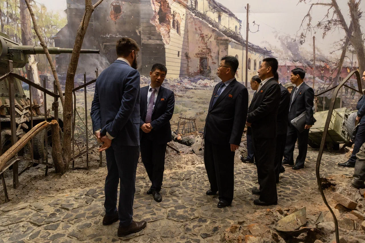«Для гостей провели экскурсию по новой выставке «Плечом к плечу», посвященной сотрудничеству России и КНДР. Открытие выставки было приурочено к годовщине установления дипломатических отношений между СССР и Корейской Народно-Демократической Республикой (12 октября 1948 года). Также делегация посетила уникальную экспозицию «Подвиг Народа», в которой представлен вклад в Победу тружеников тыла — тысяч рядовых граждан страны, деятелей науки, медицины, культуры и всех, кто, не жалея сил и здоровья, трудился на благо страны в тяжелые годы Великой Отечественной войны», — рассказали в Музее Победы.