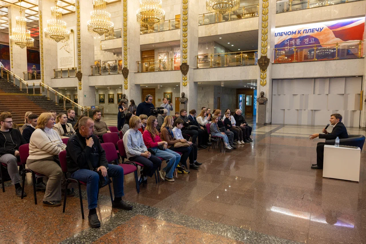 «Мы встречаемся с вами в таком знаковом месте, я много раз был в Музее Победы на разных мероприятиях, и это место – величественное. Мой дедушка по папиной линии он был Героем Великой Отечественной войны, участвовал в боях за Сталинград, и за Киев, и за другие города, и у него много наград. И, безусловно, мы должны хранить и передавать память о защитниках страны», — сказал, открывая встречу, Сергей Александрович.