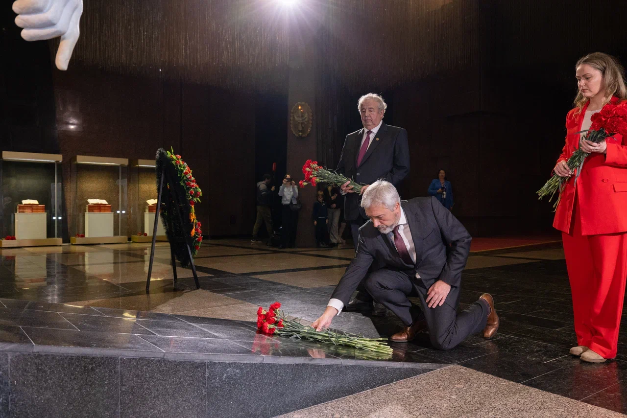 Руководитель Россотрудничества Евгений Примаков и гости также приняли участие в мемориальной акции, возложили цветы в Зале Памяти и Скорби и отдали дань памяти всем, кто сложил свою жизни за Победу и мир.