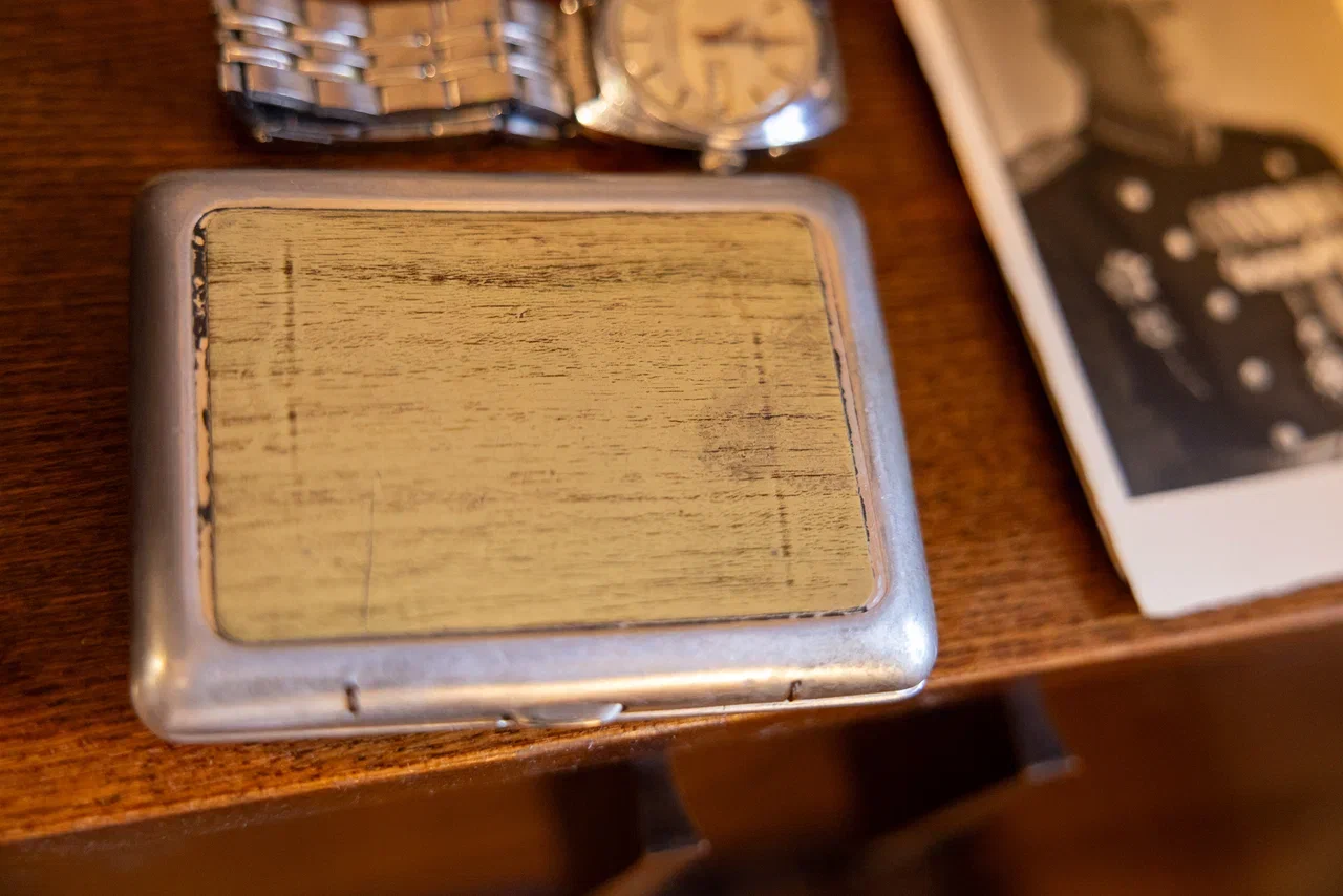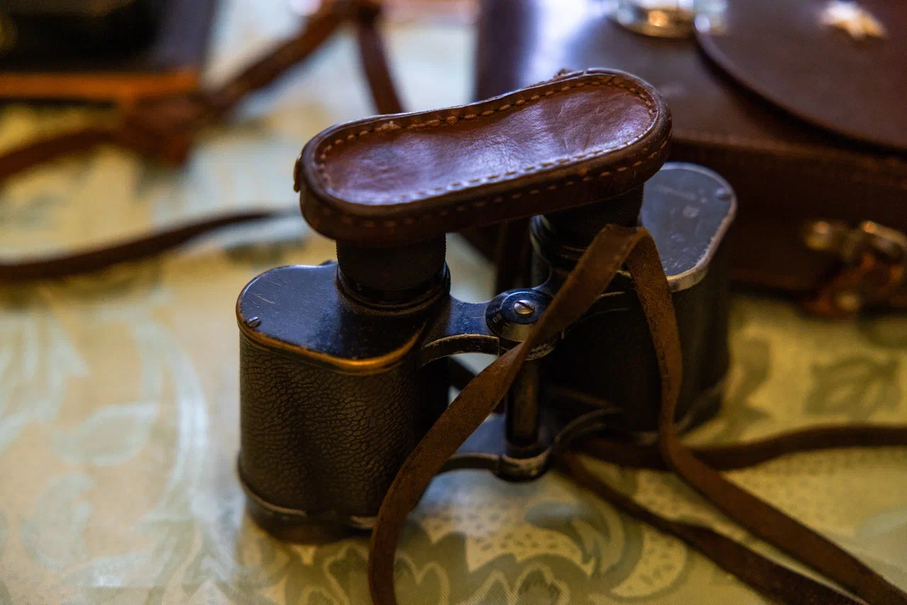 «Вот эта фотография после учений, здесь генерал-майор Дубинин, которому только присвоено звание и он вот стоит в окружении военного руководства. Здесь же у него бинокль, вот он. Отец с ним прошел всю войну. И вот он до сих пор хранится. Он и после войны его использовал. Здесь еще трофейная фляжка и первый его портсигар, и часы», – добавил он.