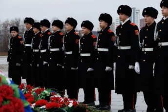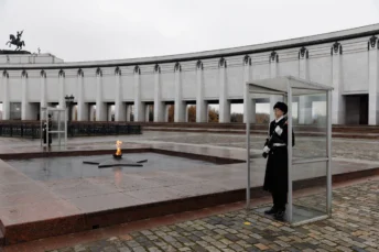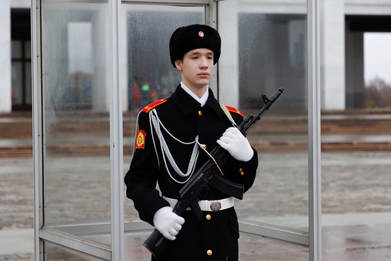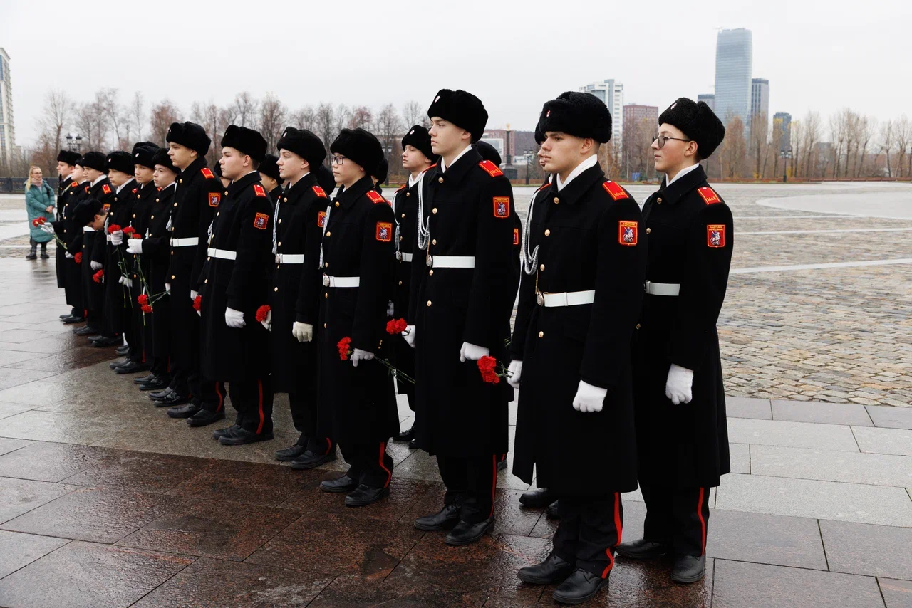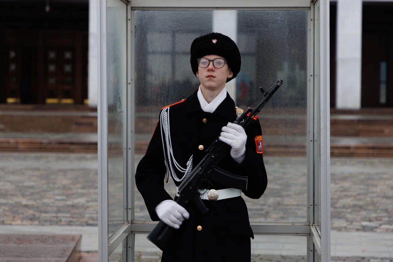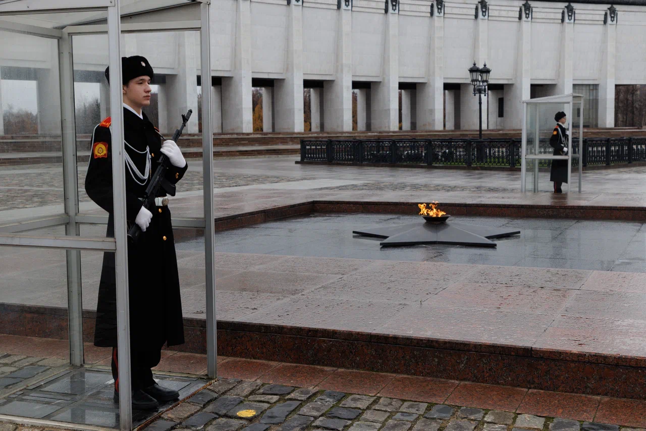 В Музее Победы отмечают годовщину исторического парада, который прошел 7 ноября 1941 года на Красной площади в Москве. В честь памятной даты на Пост № 1 около музея заступили ученики 8-го класса Первого Московского кадетского корпуса.