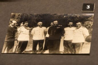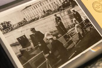 В витрине показаны раритеты наркома Военно-Морского Флота СССР Николая Герасимовича Кузнецова. 7 ноября 1941 года самый молодой на период начала Великой Отечественной нарком вместе с другими руководителями страны стоял на трибуне мавзолея, перед которым советские войска прошли историческим маршем.