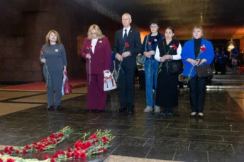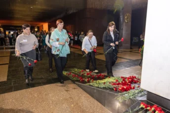 Также в Музее Победы участники возложили цветы к монументу «Скорбь» в Зале Памяти и Скорби и посетили новую мультимедийную экспозицию Музея Победы – «Путь к Победе», где представлена фронтовая летопись Великой Отечественной войны в военных судьбах красноармейцев.