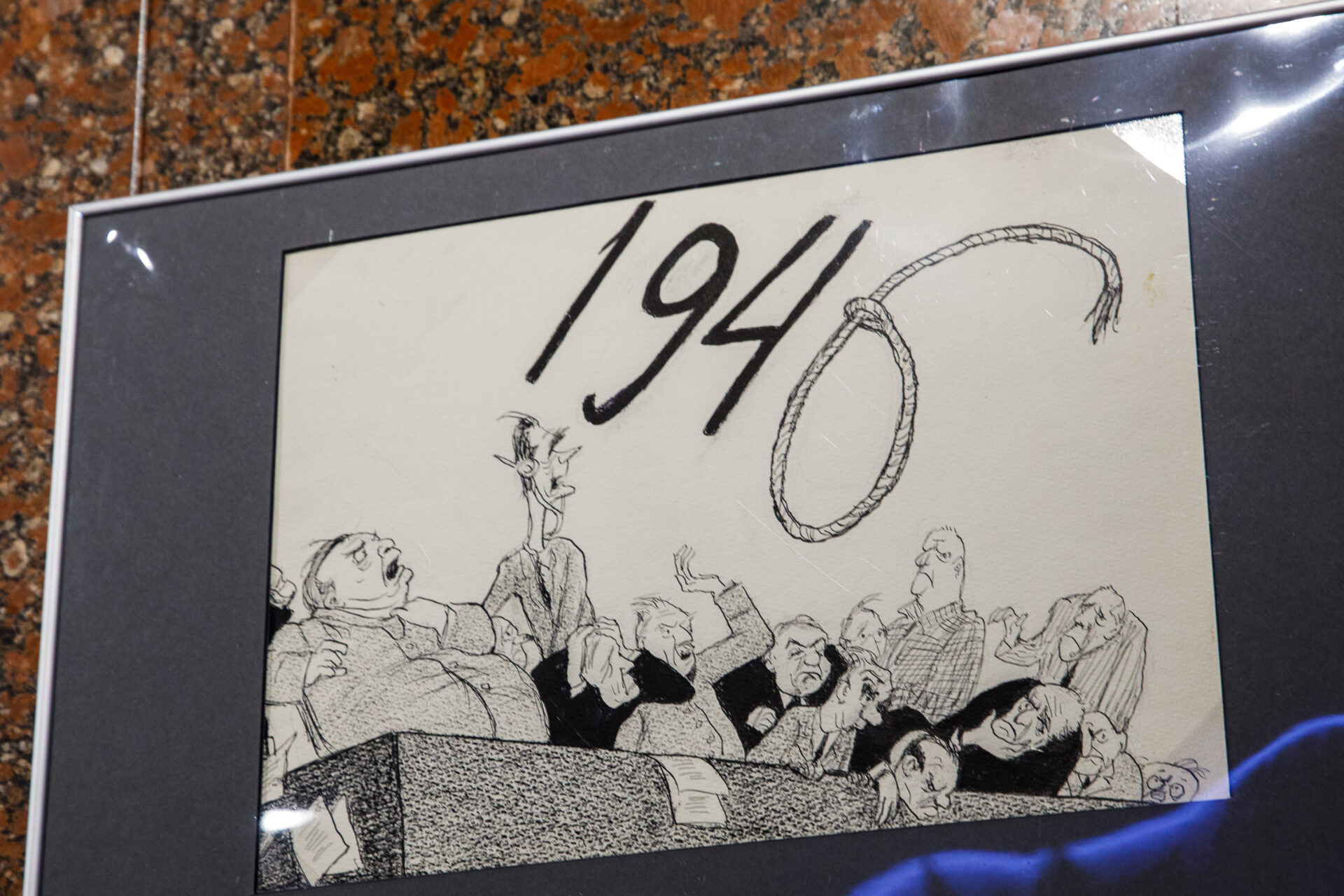 «Яркие и хлесткие рисунки и карикатуры являются по сути психологическими портретами, отражающими состояние подсудимых в ходе суда. Художники, в том числе, отобразили, как менялось настроение нацистов, как под влиянием проходившего процесса они теряли свою уверенность в безнаказанности и начинали понимать неумолимость возмездия», — подчеркнули в Музее Победы.