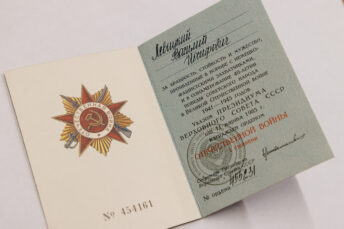 Ордена и наградные документы Героя Советского Союза Василия Иосифовича Левицкого в дар Музею Победы передала его дочь Надежда Левицкая.