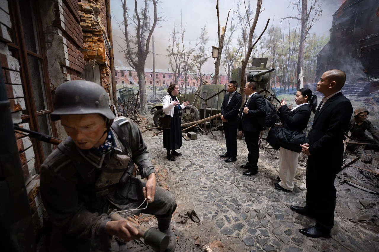 В локациях экспозиции гости из Таиланда ознакомились с материалами, рассказывающими о героизме советского народа в годы Великой Отечественной войны, и прошли «путь от Бреста до Берлина».