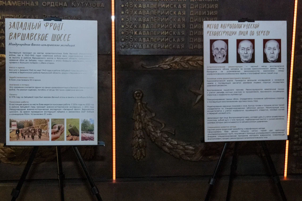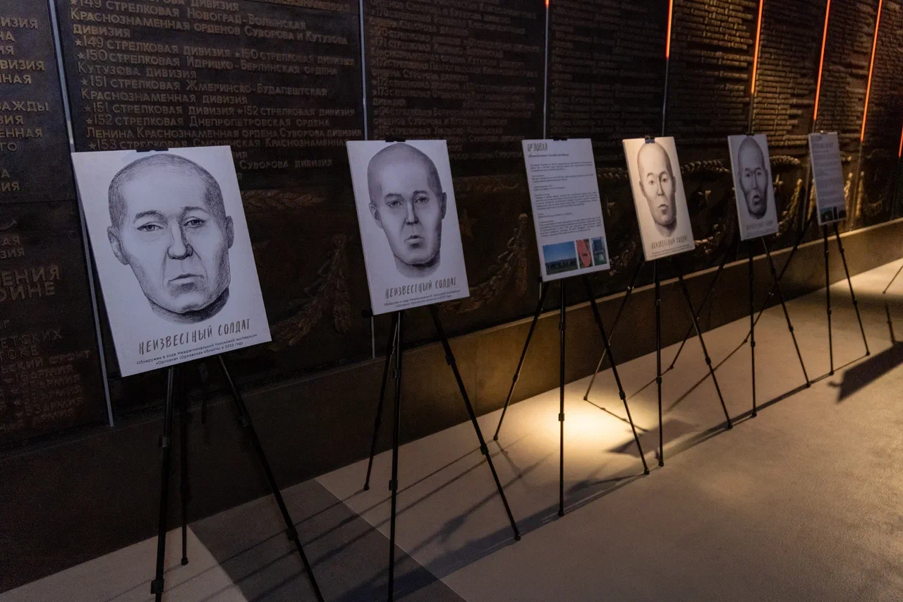 В Музее Победы в масштабной экспозиции «Путь к Победе» открылась выставка «Лики неопознанных героев». Посетителям представили графические портреты без вести пропавших красноармейцев. Бойцов обнаружили поисковики, а их облик воссоздали ученые Института этнологии и антропологии им. Н.Н. Миклухо-Маклая РАН.