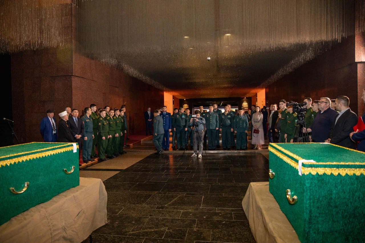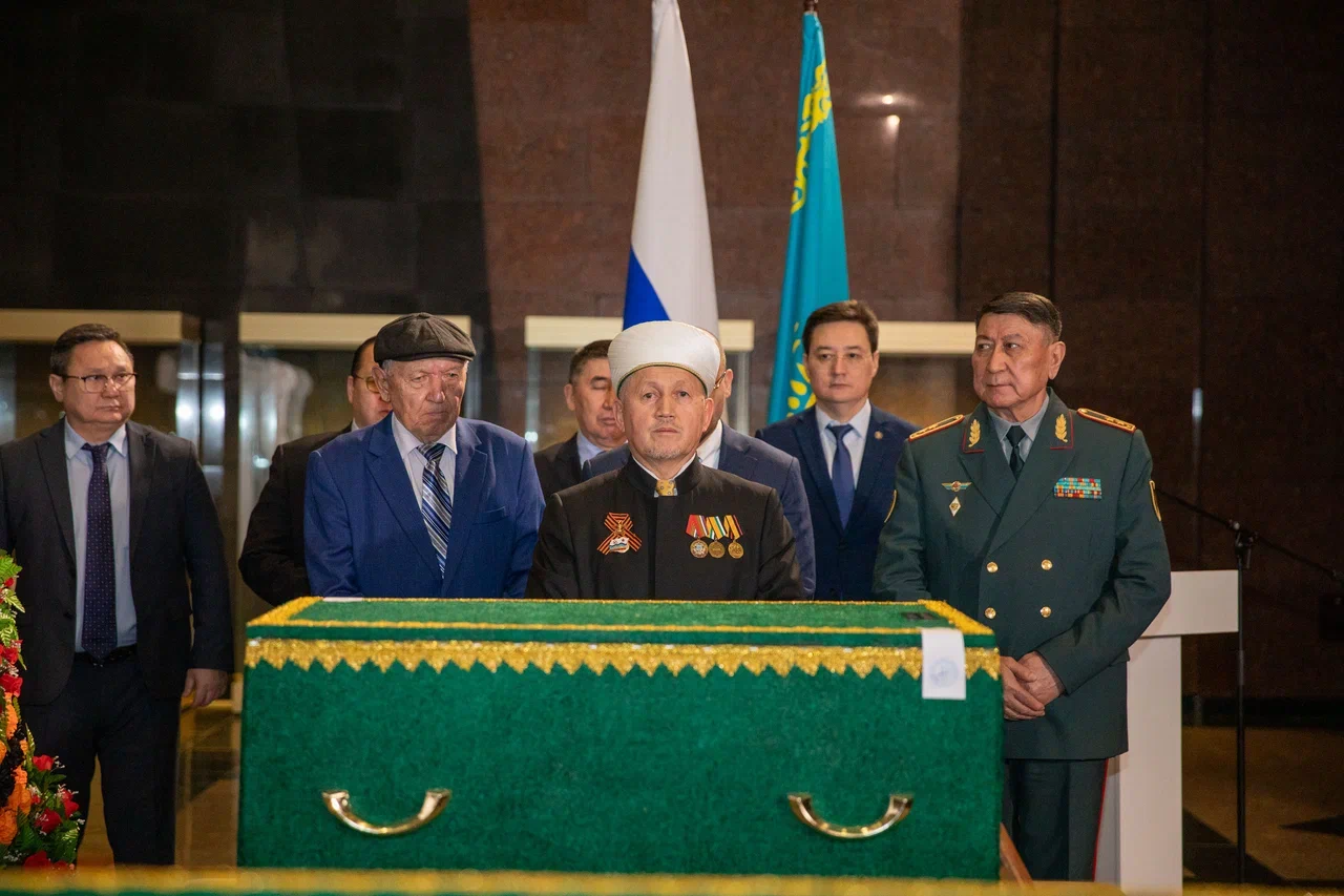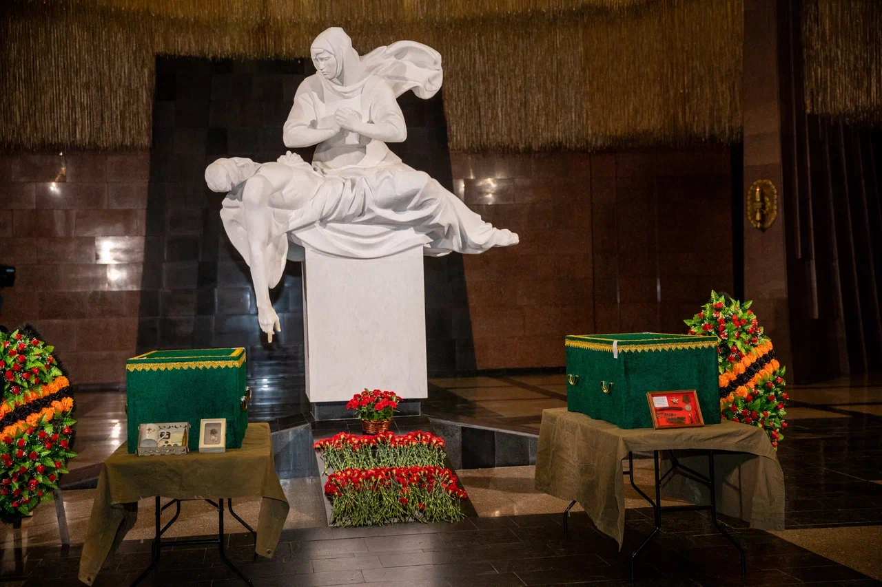 В Музее Победы прошла траурная церемония по возвращению на родину советских бойцов уроженцев Казахстана героически погибших в ходе Великой Отечественной войны и обнаруженных поисковыми отрядами России в этом году на территории Псковской области.