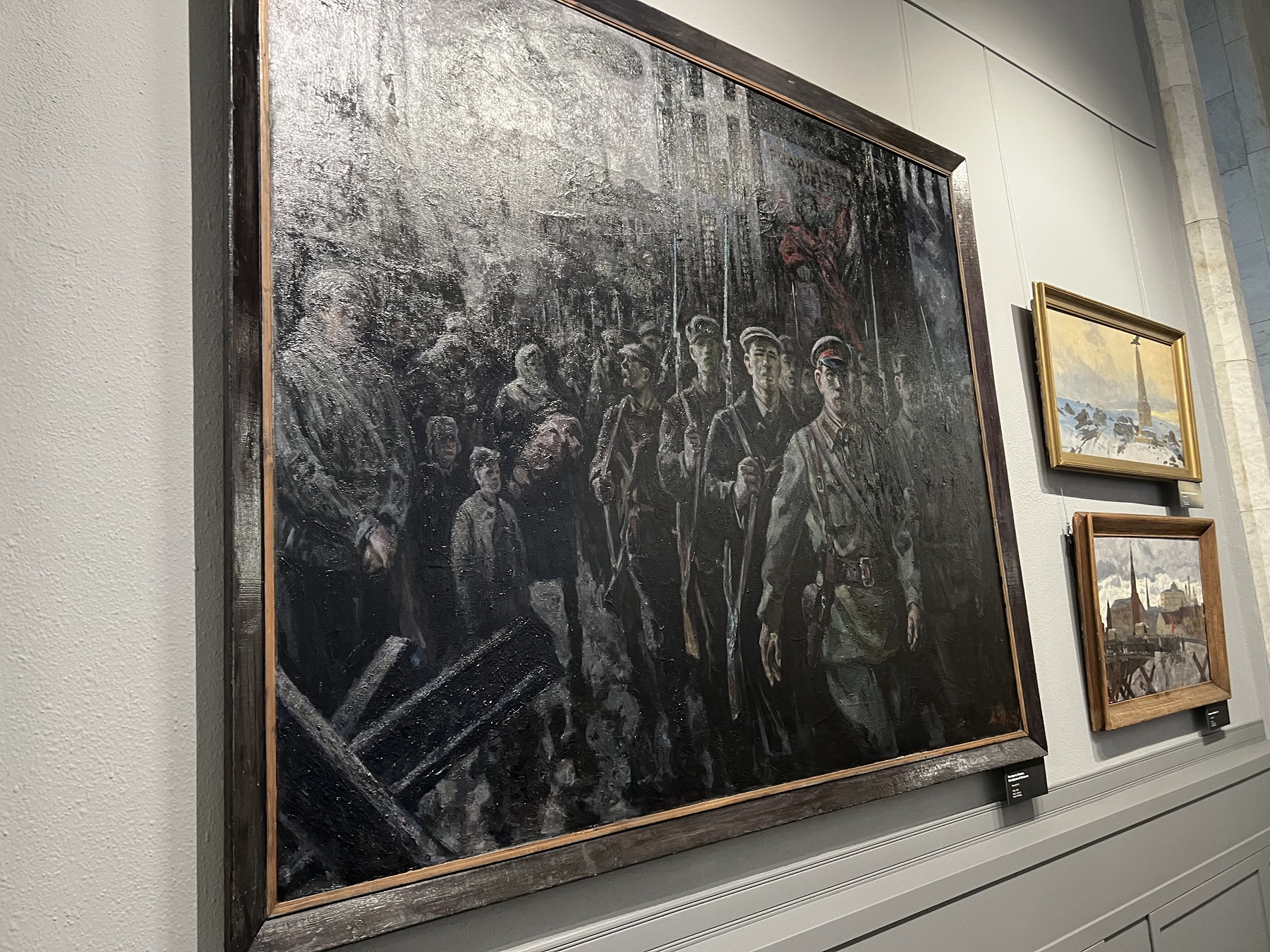 «Перед нами — синтез реалистической традиции и индивидуально переосмысленных приемов импрессионизма. Контрастная работа с цветом делает фигуры изображенных солдат живыми и пластичными», — подчеркнули в Музее Победы.