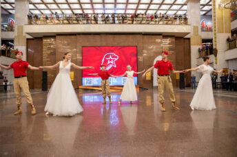 Юнармейцы увидели световую инсталляцию «Дорога к Победе», которая рассказывает о ключевых событиях военных лет — начало войны, битва за Москву, блокада Ленинграда, Сталинградская битва, штурм Берлина и Парад Победы. Затем ребята посмотрели кинофильм «Маршал Баграмян. Искусство победы» в кинотеатре Музея Победы «Поклонка».