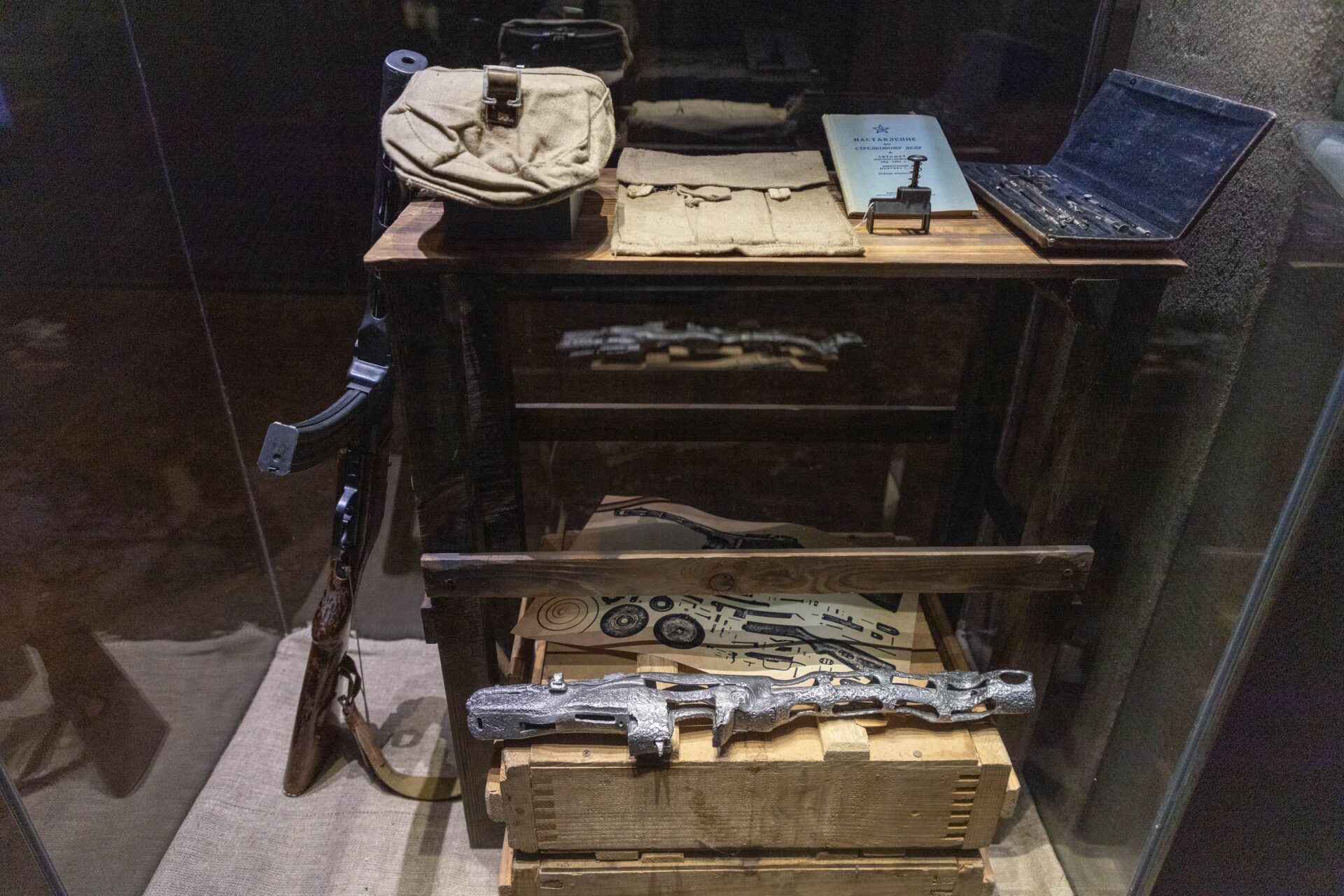 В обновленной экспозиции представят около 40 раритетов из фондов Музея Победы. Гости увидят образцы пистолетов-пулеметов разных лет выпуска, предметы экипировки — сумки для магазинов, зарядные устройства и вспомогательные приспособления, например барабанный и коробчатый магазины для ППШ-41, а также буклеты, плакаты и другие печатные издания о стрелковом оружии.