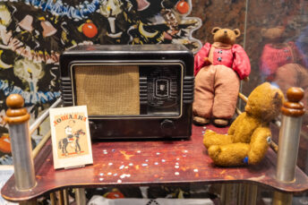 На выставке представили оригинальные издания 1942–1944 годов из фонда редких книг РГДБ. Среди них — книжка-игрушка «Ванька-встанька» (1944) необычной для военного времени формы, с использованием вырубки, с иллюстрациями Юрия Васнецова, сказка «Гуси-лебеди» (1942), стихотворение Корнея Чуковского «Чудо-дерево» (1942) с графикой Владимира Конашевича и «Мойдодыр» (1943), произведения Евгения Чарушина, Сергея Михалкова, Агнии Барто.