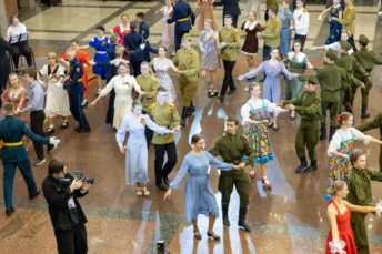 В Музее Победы состоялся «Бал внуков Победителей», посвящённый 81-й годовщине Победы в Великой Отечественной войне. На бал съехались студенты и курсанты высших учебных заведений Москвы и Московской области.
