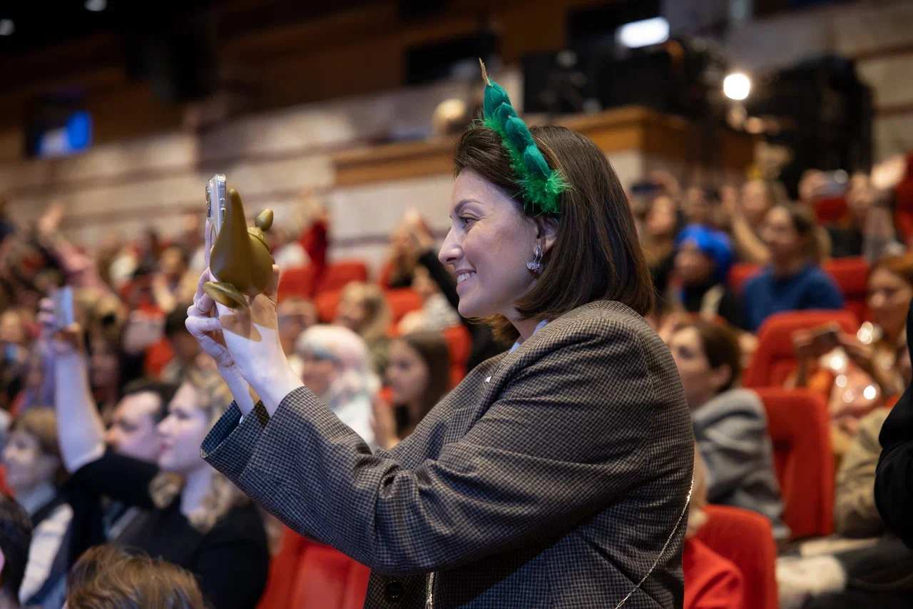 Олимпийский чемпион Роман Костомаров и бронзовый призер Олимпиады Оксана Домнина рассказали аудитории, как добились успеха. По их мнению, главной мотивацией для спортсмена является семья, так как родные люди – это источник и поддержки, и вдохновения, пресс-служба Российского общества «Знание».